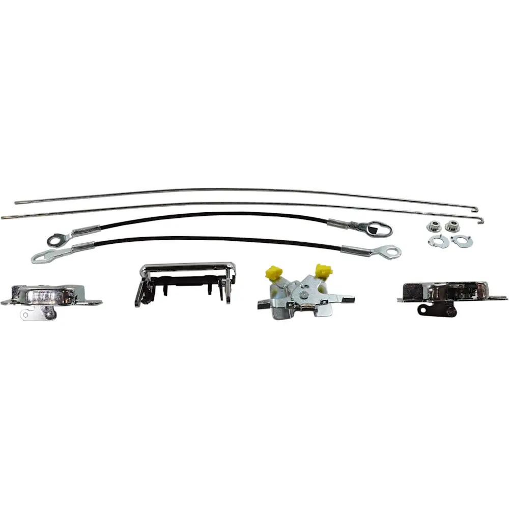 NOTES: WITH CHROME HANDLE; 2 RODS; 2 CABLES; 2 LATCHES; 1 HINGE