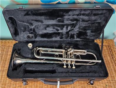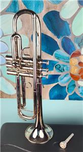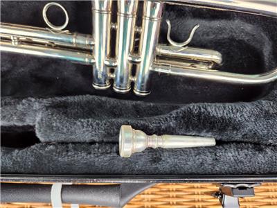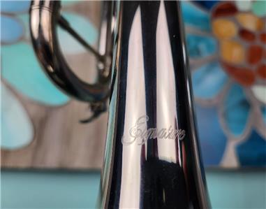 DETAILS: Up for sale is a nice trumpet with mouthpiece and travel case. I could only find two markings on the trumpet; one being "Signature" and the the other a number "0875944". I'm assuming the Signature might be the brand, but i'm unsure and the number probably a serial number. I'm not an expert and do not know much about instruments. There are three key that get pressed up top need to be put together properly as the holes on the keys need to match with the inside of the trumpet and I was only able to do it properly on the middle one, as it goes up and down fairly easily. The other two I had a harder time alignment properly and they are not going in and out as easy as they should. There is a pearl like top to the keys, one is missing and one just unglued. Trumpet is being sold as is, looks to be in good to very good condition and case is pretty nice also, but assume it may need to be cleaned and adjusted before use, comes as shown, sale is final.