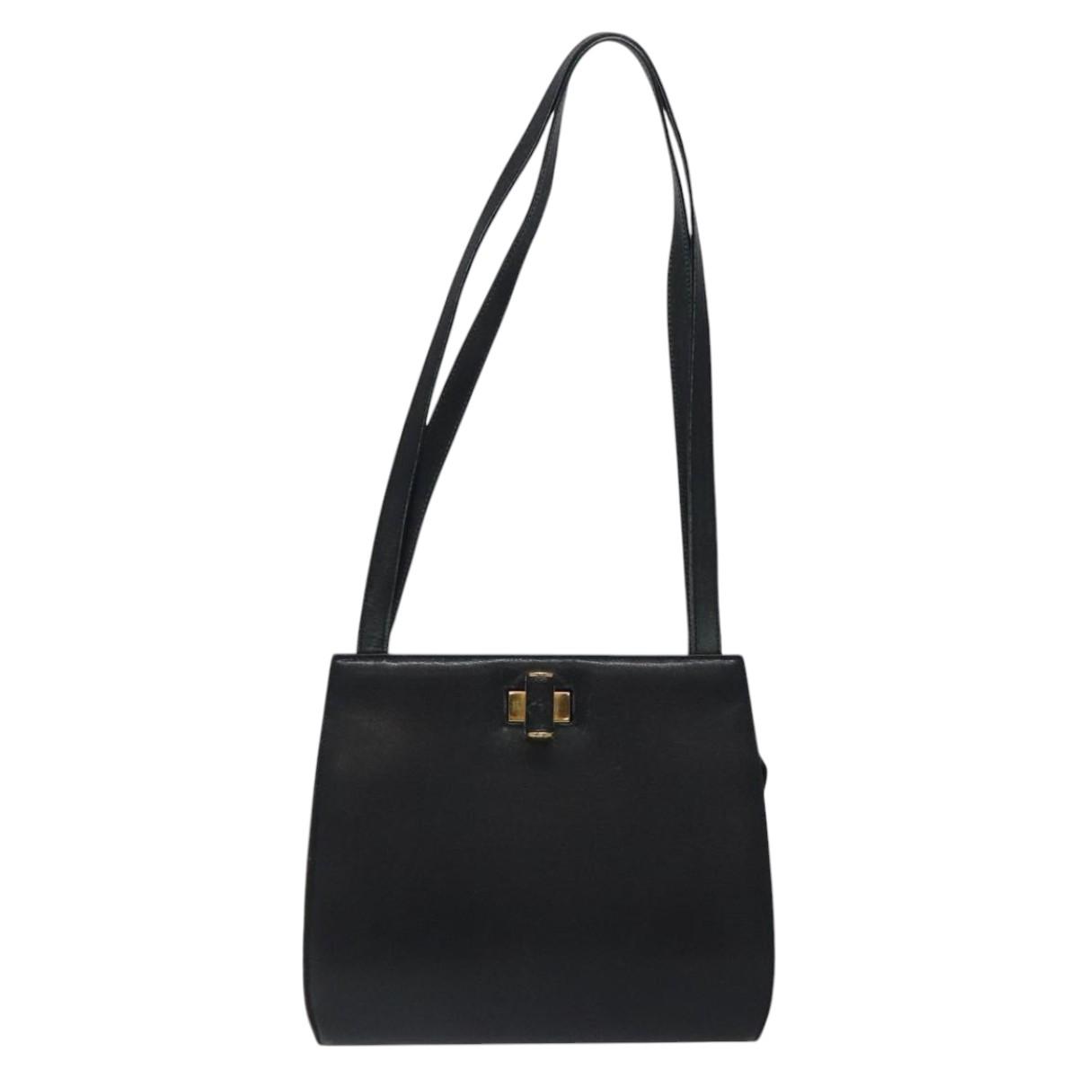 Salvatore Ferragamo Shoulder Bag Leather Black Gold Auth 116392