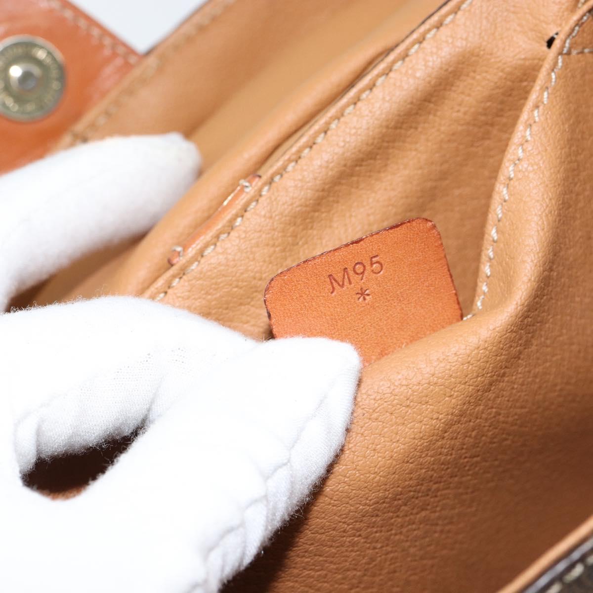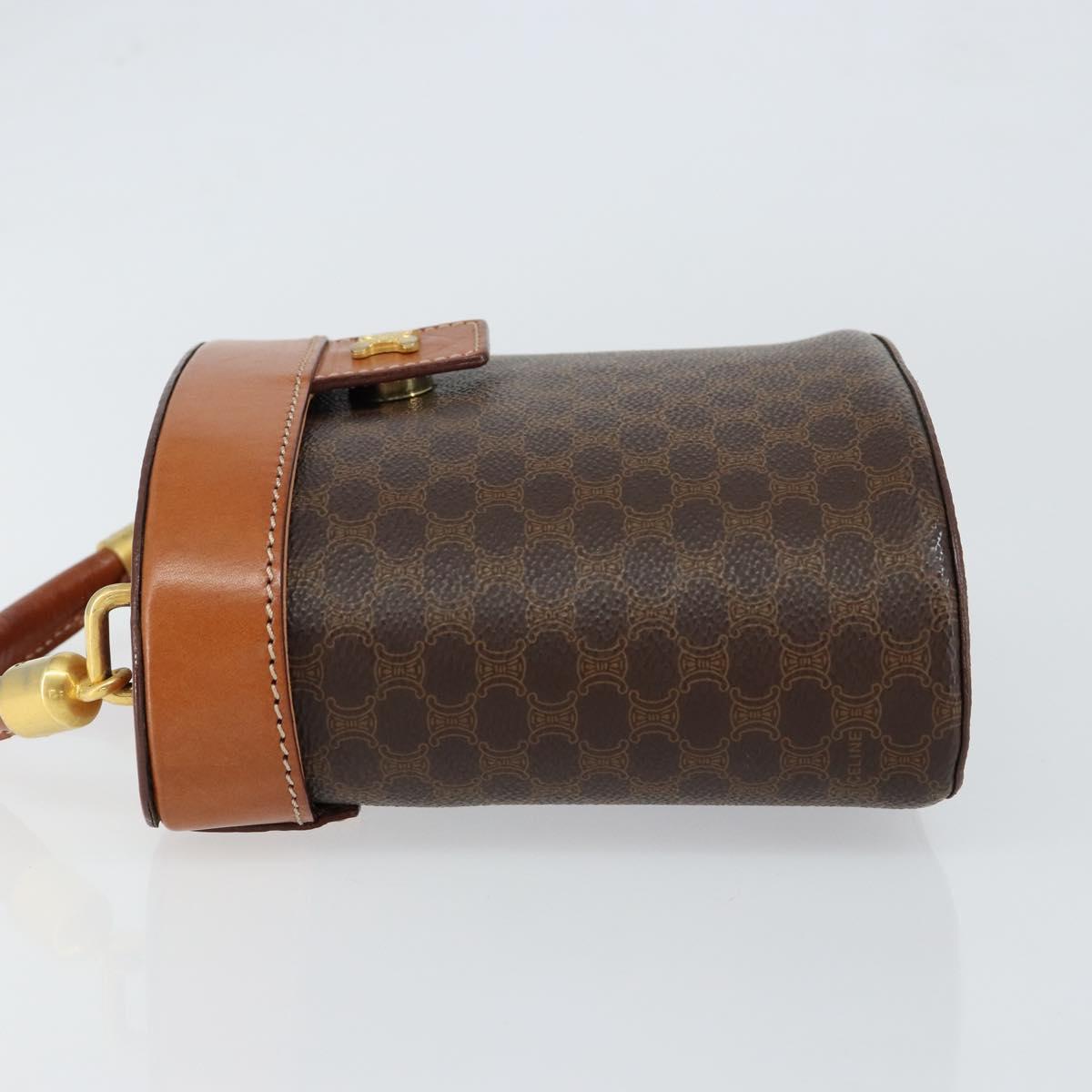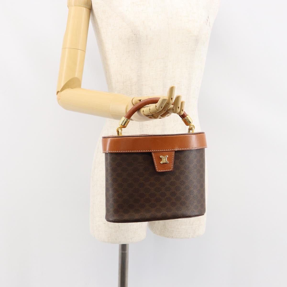CELINE Macadam Canvas Vanity Pouch PVC Leather Brown Gold Auth 121321