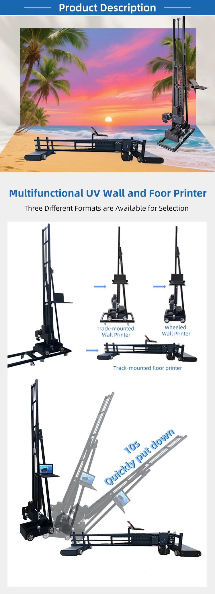 2.The innovative folding technology enables quickconversion between wall and floor printing, significantly improving convenience, savingprecious time and energy, and thus enhancing work efficiency.