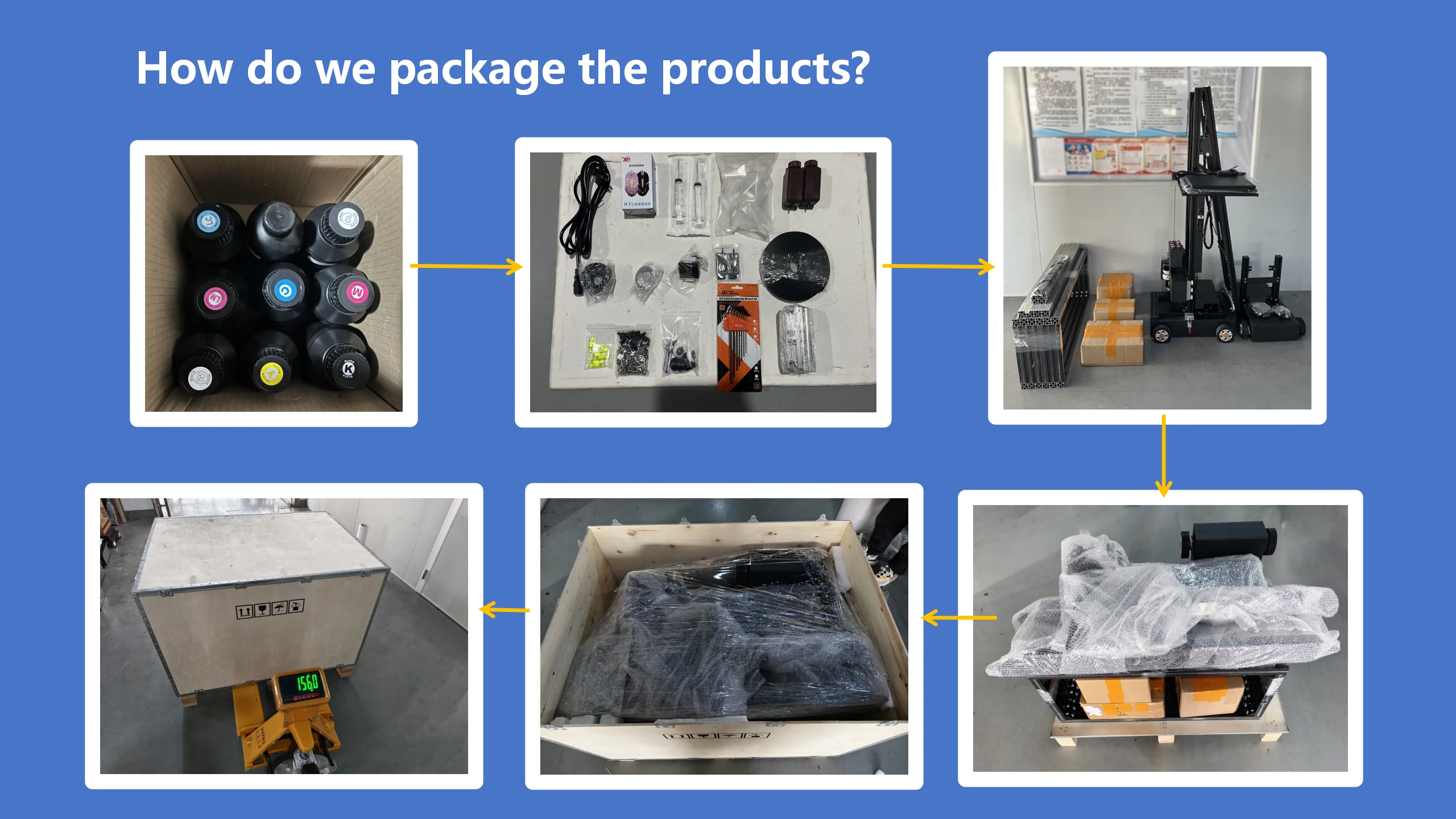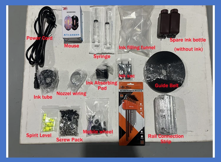 One set of ink (CMYK+W) + one bottle of cleaning solution (Default) Accessories and Machine: