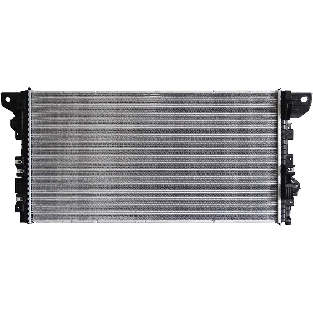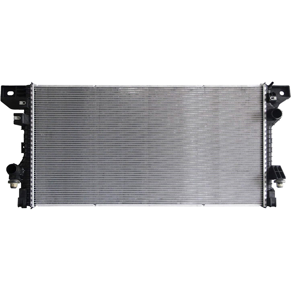 OEM replacement radiator with aluminum core and integrated transmission oil cooler. Engineered for reliable cooling under heavy towing and hauling in Ford truck and full-size SUV applications with direct bolt-on OEM fitment.