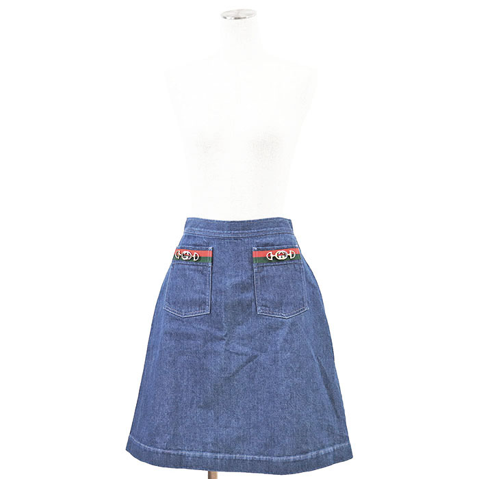 | Item | Denim Web Stripe Horsebit A-Line GG Charm skirt |