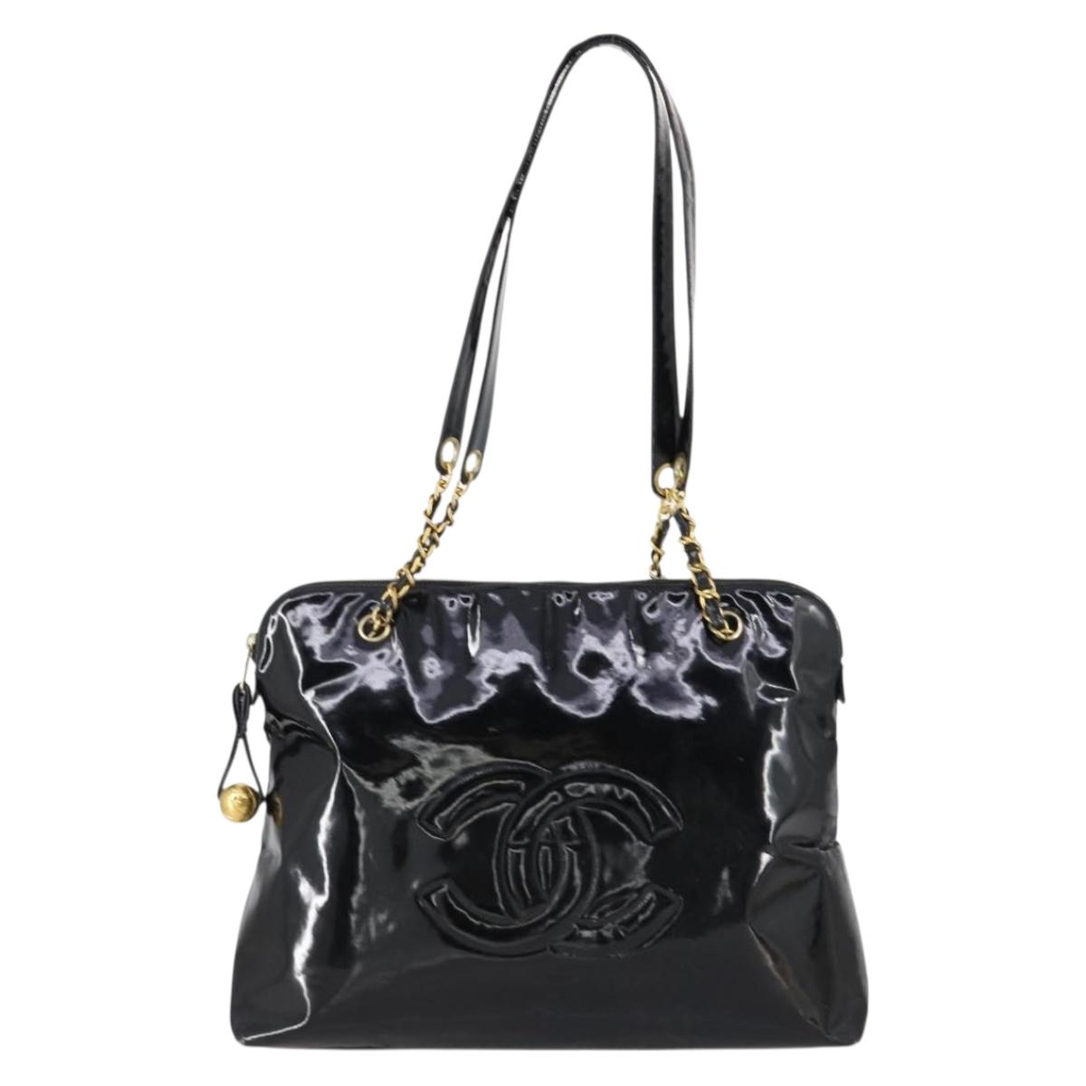 CHANEL COCO Mark Chain Shoulder Bag Patent leather Black Gold CC Auth 152898