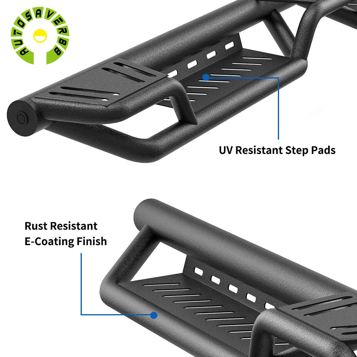 Heavy Duty Carbon Steel : Made of thick, heavy - duty carbon steel pipes, the step rails can bear up to 550 lbs. The durable powder - coated surface protects the vehicle's sides from dirt, water, and rust.