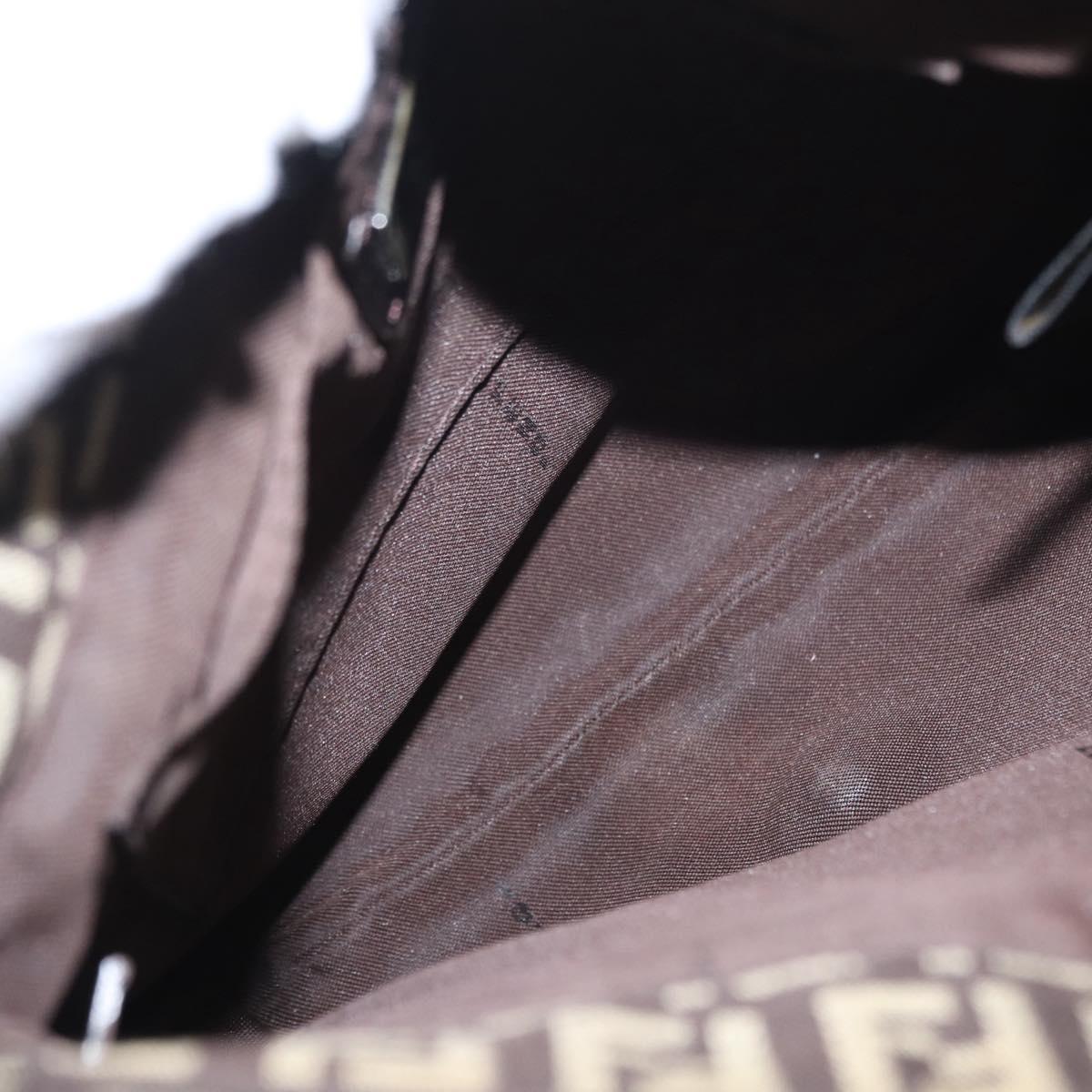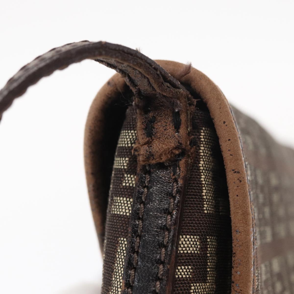 FENDI Zucchino Canvas Shoulder Bag Brown Silver Auth 154749