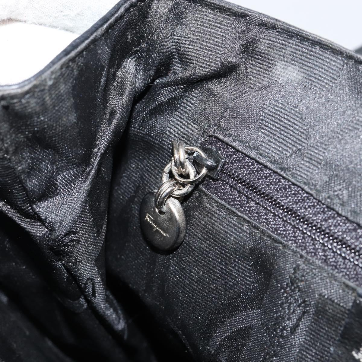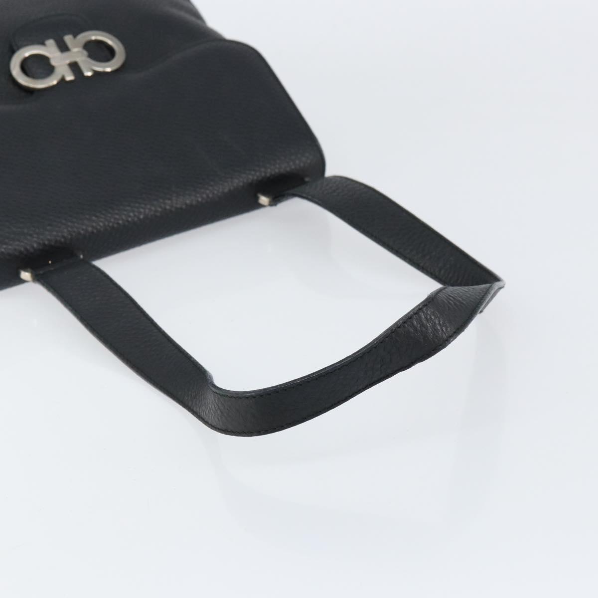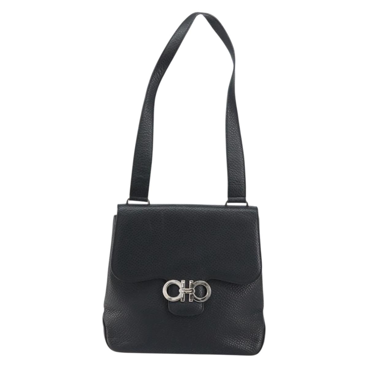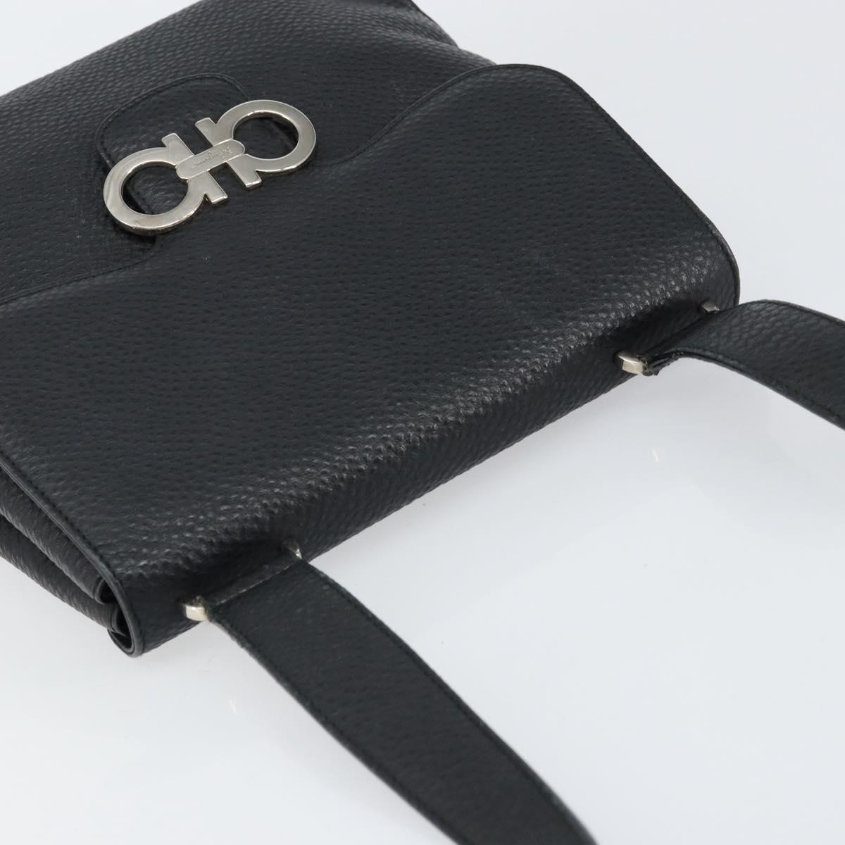 Salvatore Ferragamo Gancini Shoulder Bag Leather Black Silver Auth BA8229