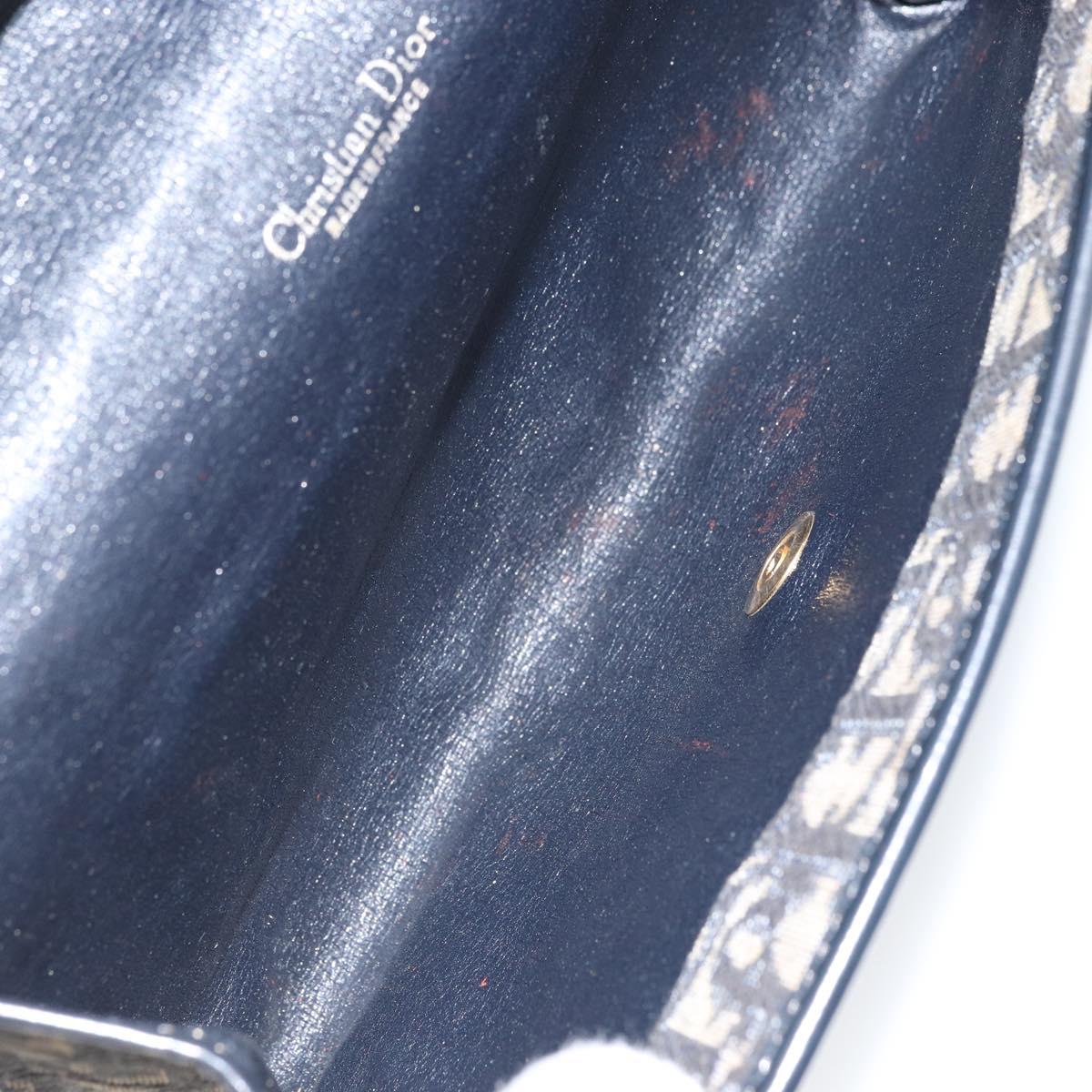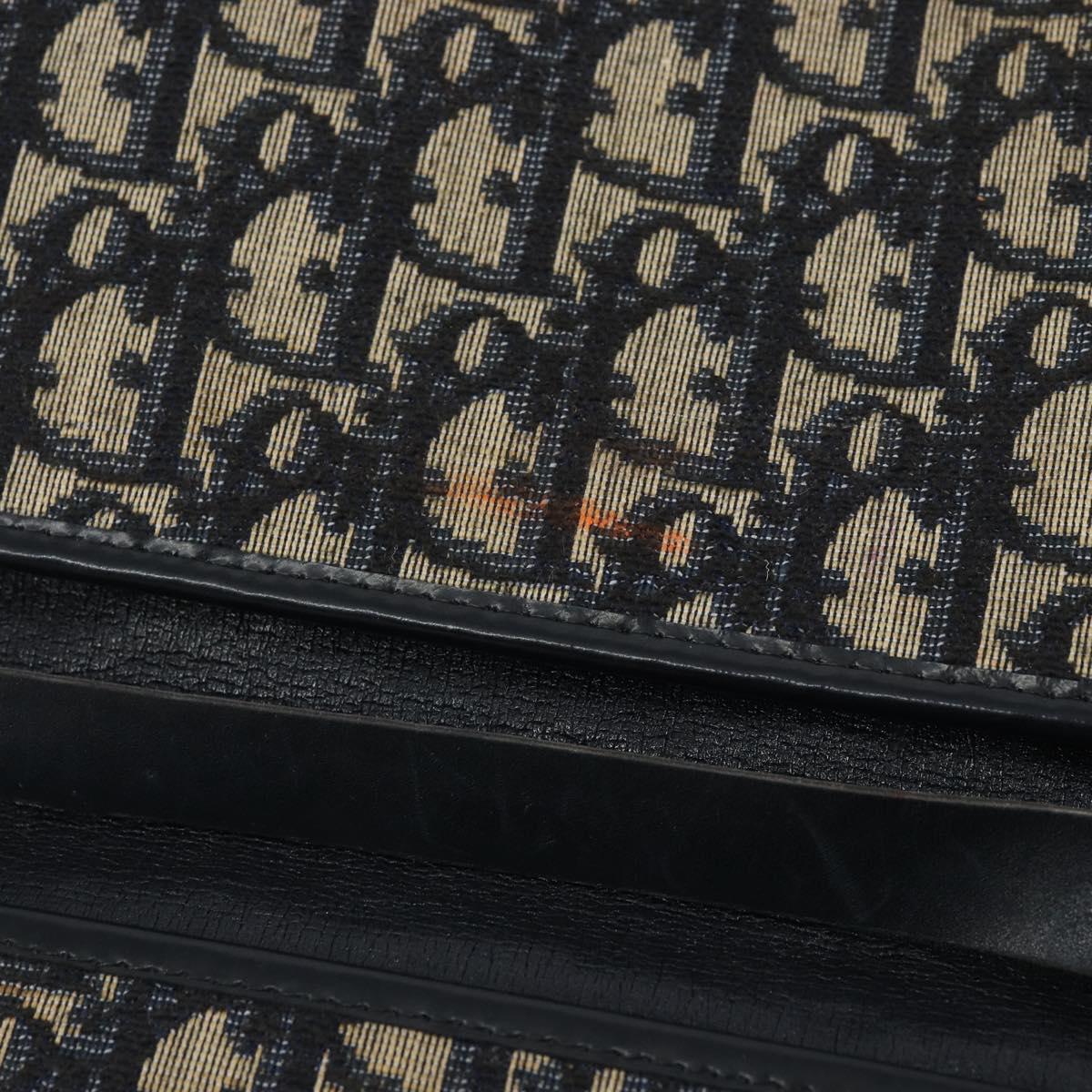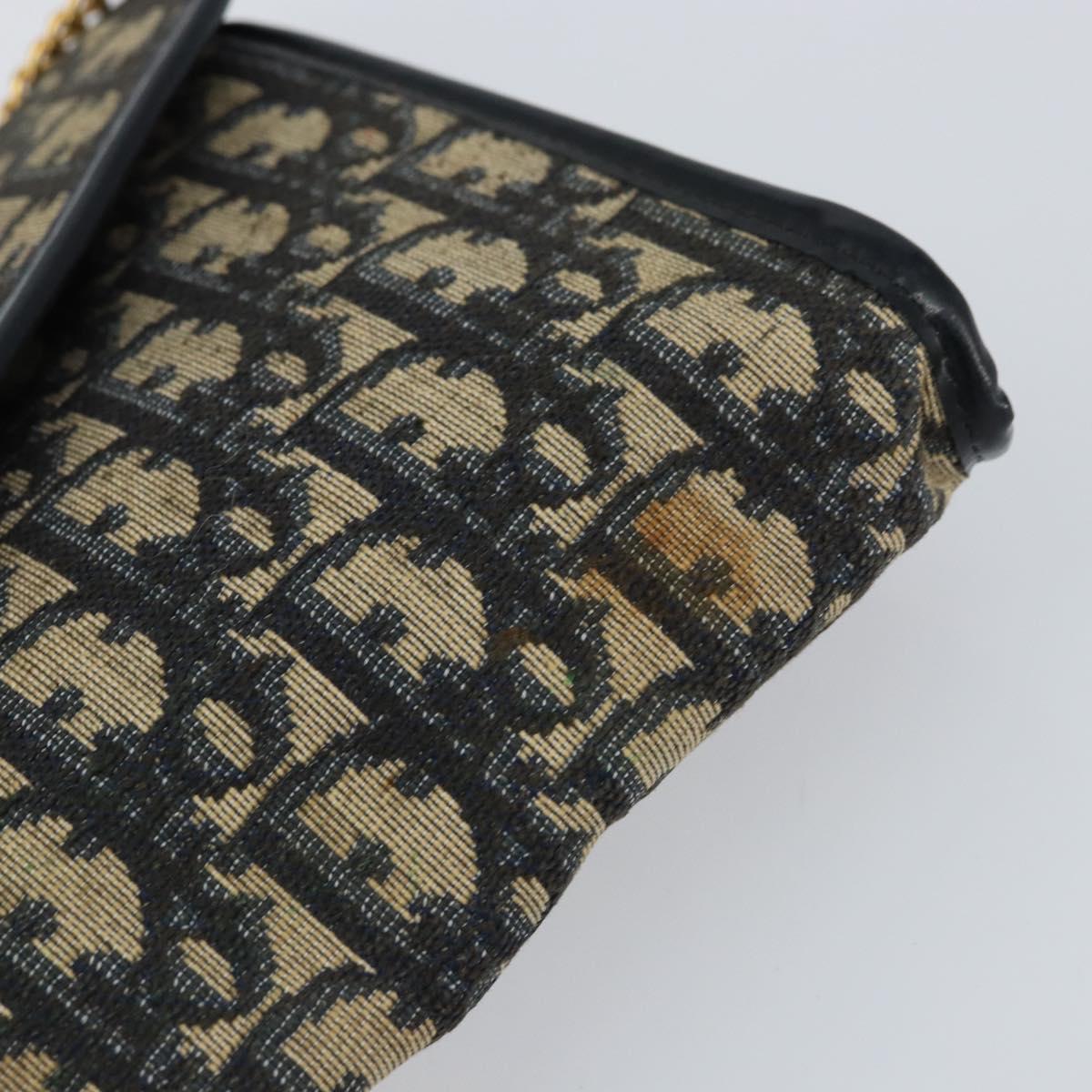 Christian Dior Trotter Canvas Chain Shoulder Bag Navy Gold Auth bs31375