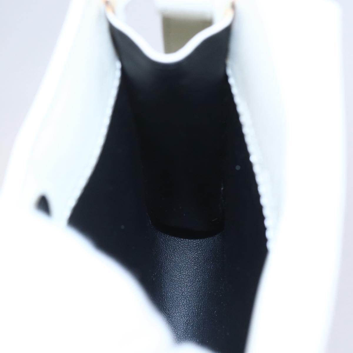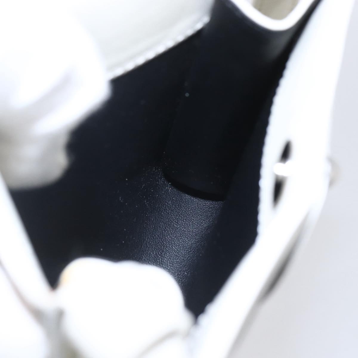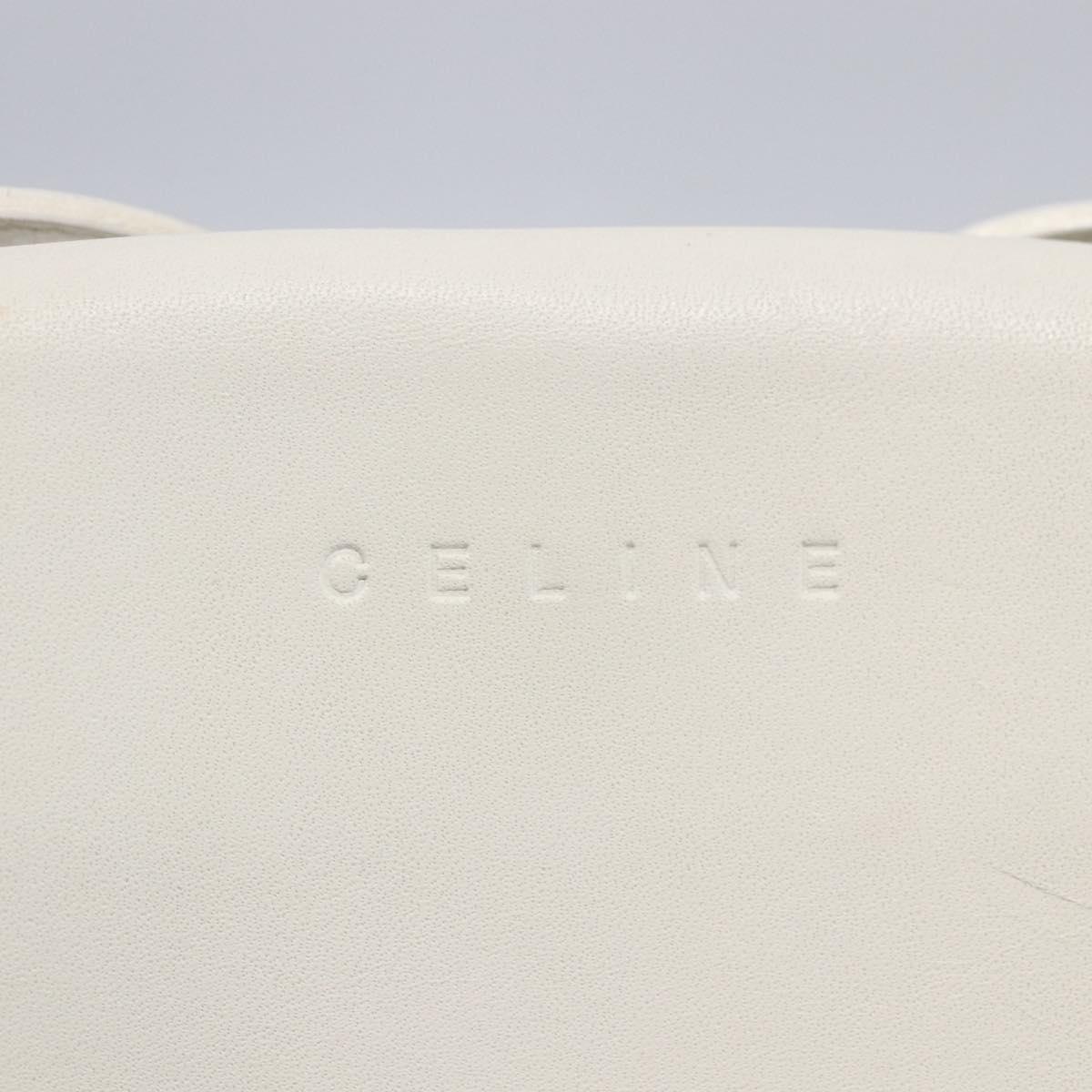 CELINE Flower Shoulder Pouch Leather White Silver Auth 154908