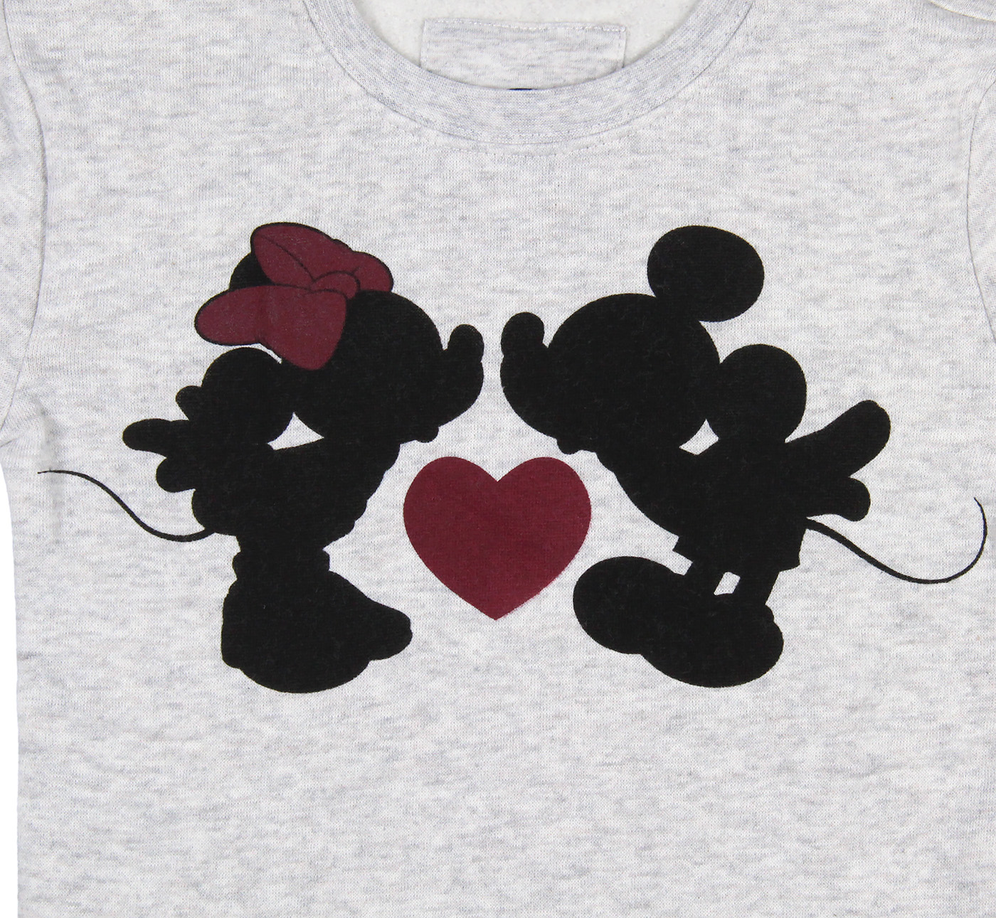 SUPER CUTE DESIGN - This adorable Disney top features a great printed design of Mickey and Minnie about to share a smooch with a heart in between them.