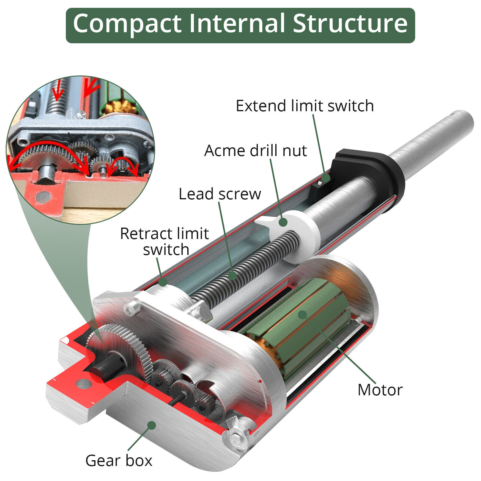 HIGH QUALITY-- The linear actuator is made of high quality metal material, which is equipped with high performance motor and built-in stroke switch. It is ideal for driving electric gates, automatic windows and other home automation assemblies.