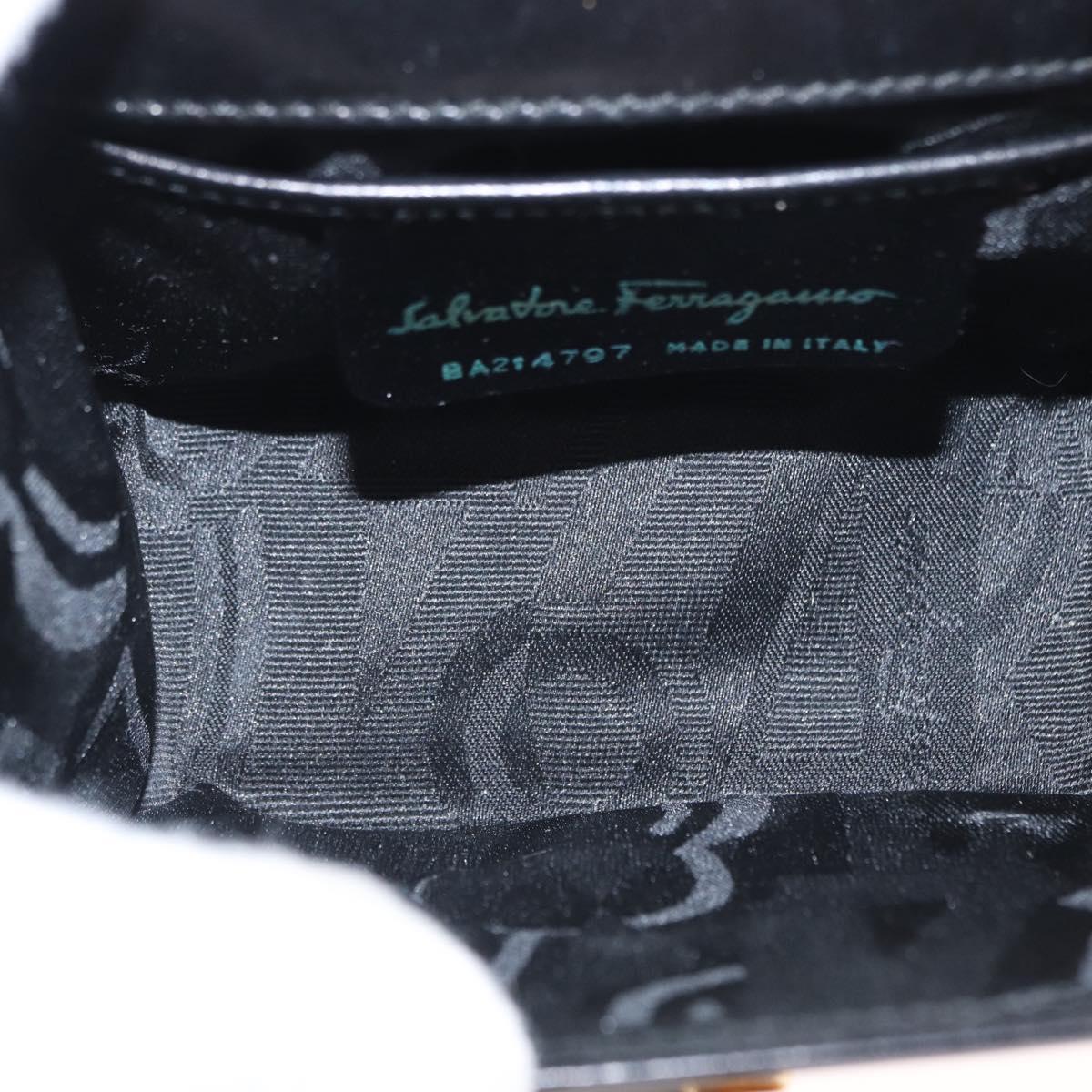 Salvatore Ferragamo Gancini Shoulder Bag Leather Black Gold Auth bs31444