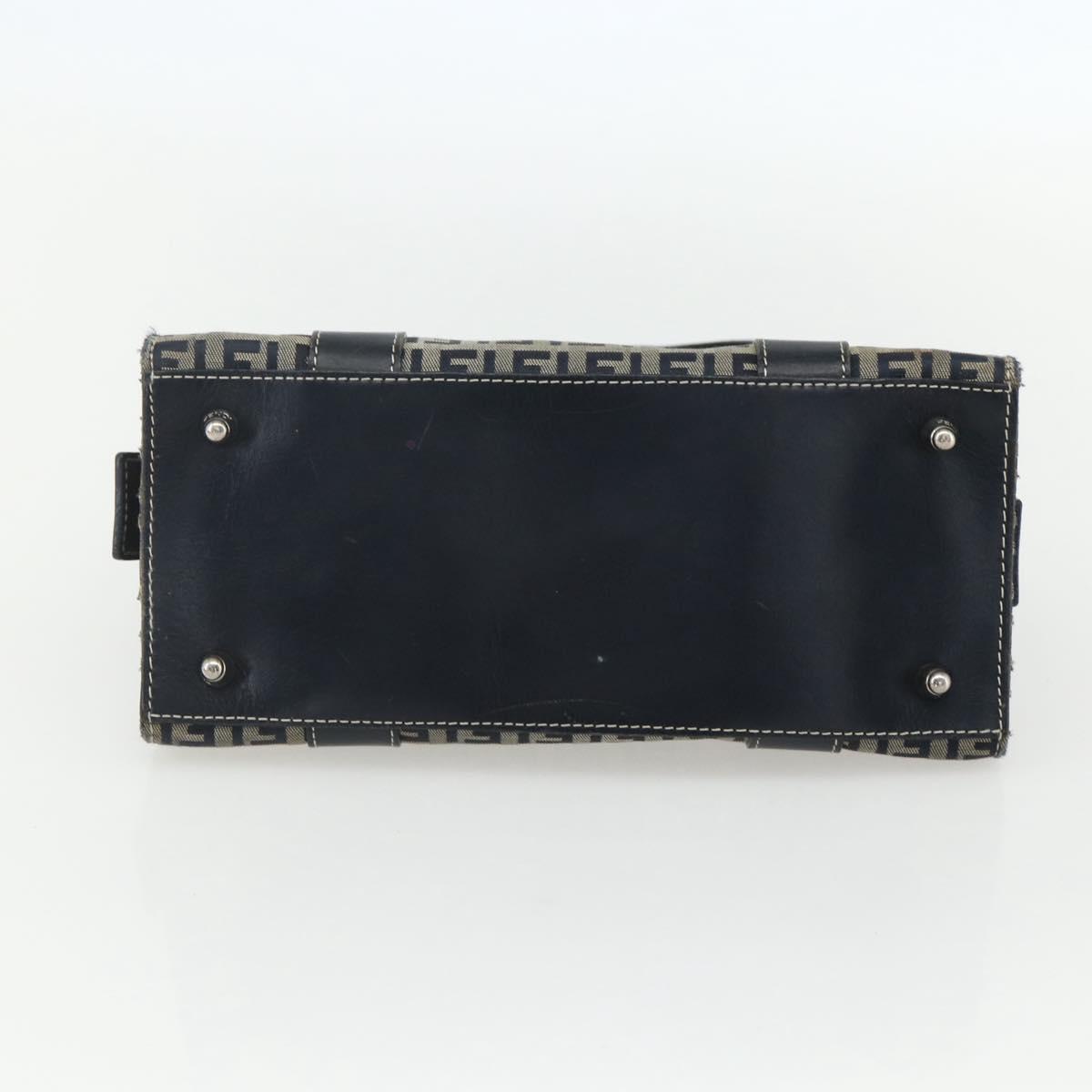 FENDI Zucchino Canvas Hand Bag Navy Silver Auth ka500