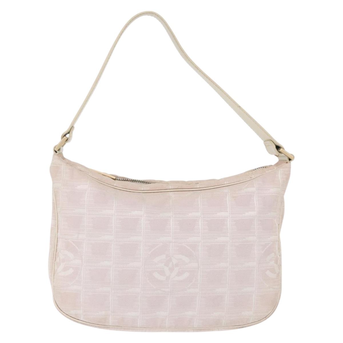 CHANEL New Travel Line Hand Bag Nylon Pink Gold CC Auth 152899