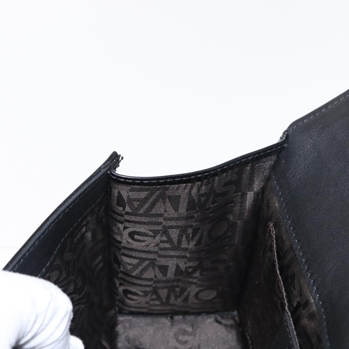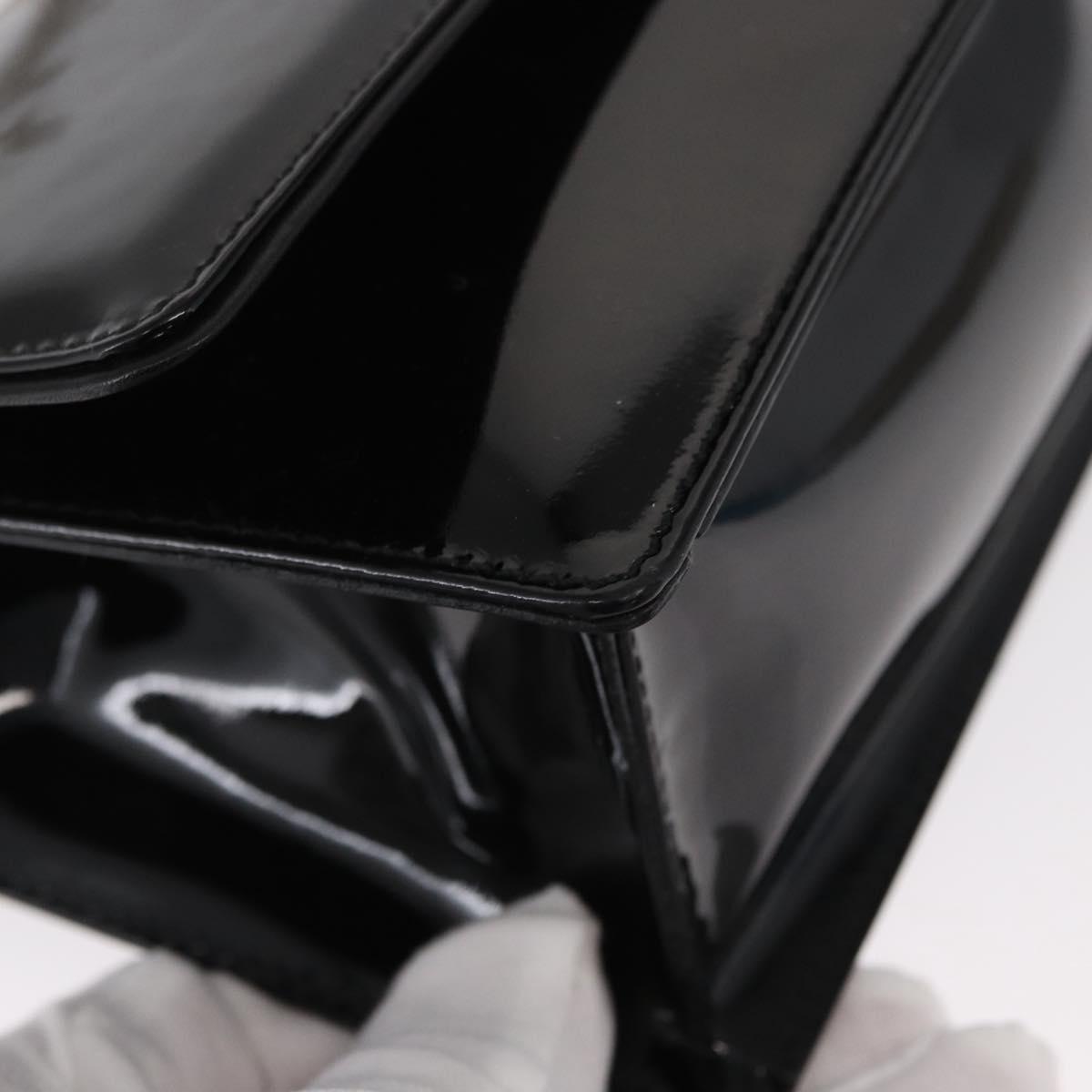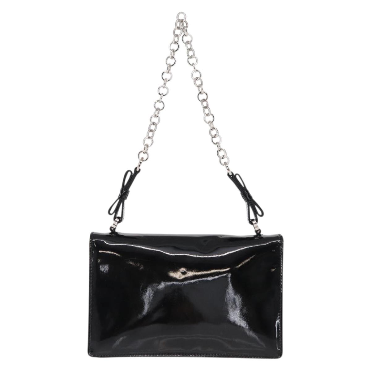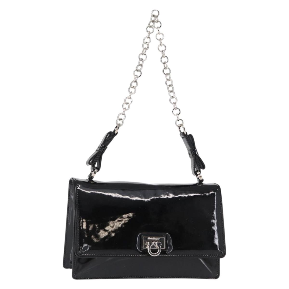 Salvatore Ferragamo Chain Gancini Shoulder Bag Enamel Black Silver Auth 143669