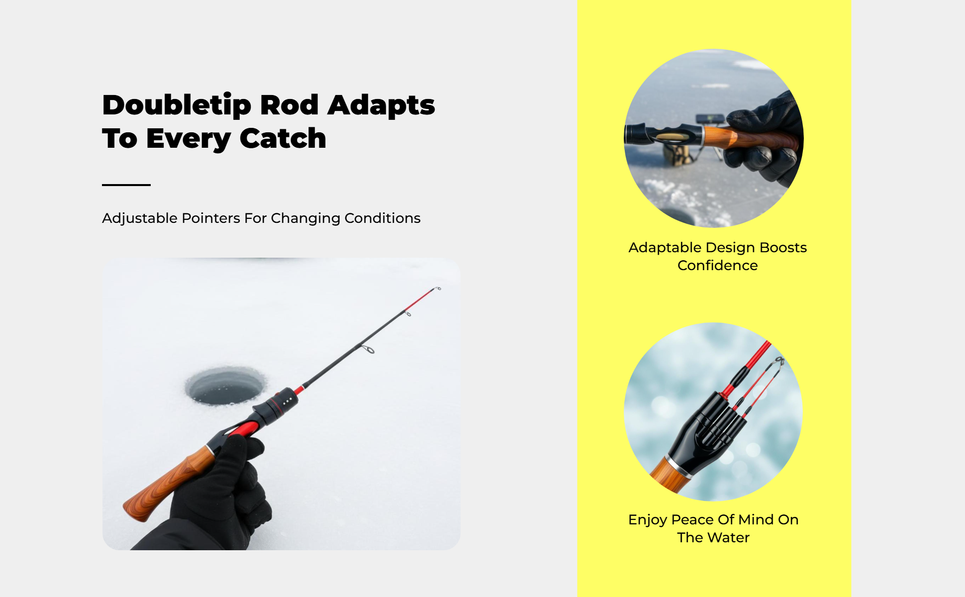 【Canne à pêche sur glace adaptée à l'hiver】Cette canne dispose d'une double pointe et est fabriquée en fibre de verre robuste, idéale pour la pêche hivernale en lacs, rivières et étangs. Son design léger et portable facilite le transport et l'installation pour les amateurs d'activités extérieures. 【Double pointe & haute sensibilité】Dotée d'une double pointe pour une sensibilité accrue, cette canne permet de détecter les touches discrètes et d'améliorer les prises lors de la pêche sur glace. Sa construction solide supporte les prises lourdes sans perdre en souplesse. 【Design portable et compact】Avec une longueur repliée de seulement 30cm, cette canne se transporte et se range facilement, s'adaptant aux sacs à dos ou sacs de matériel. Idéale pour les sorties de pêche spontanées ou en voyage. 【Matériau en fibre de verre robuste】Fabriquée en fibre de verre de qualité, cette canne offre solidité et résistance pour une longue durée d'utilisation en conditions hivernales. La poignée ergonomique assure une prise confortable pour une utilisation prolongée. 【Adaptée à divers environnements de pêche】Parfaite pour les réservoirs, étangs, ruisseaux, rivières et lacs, cette canne à pêche sur glace s'adapte à de nombreux scénarios, convenant aux débutants comme aux pêcheurs expérimentés.