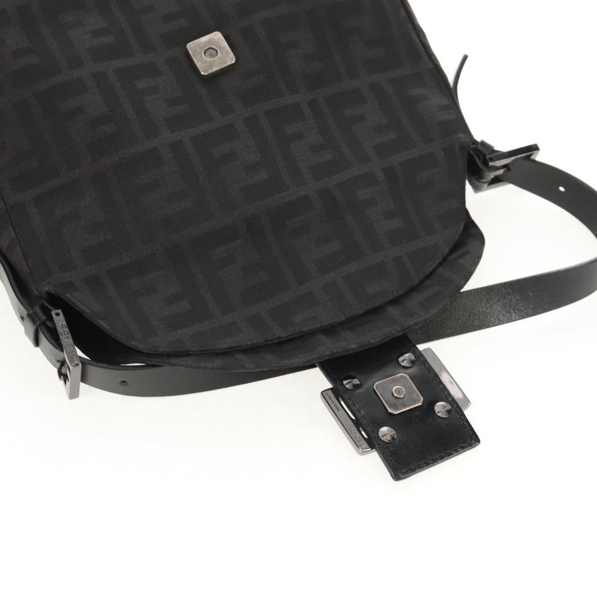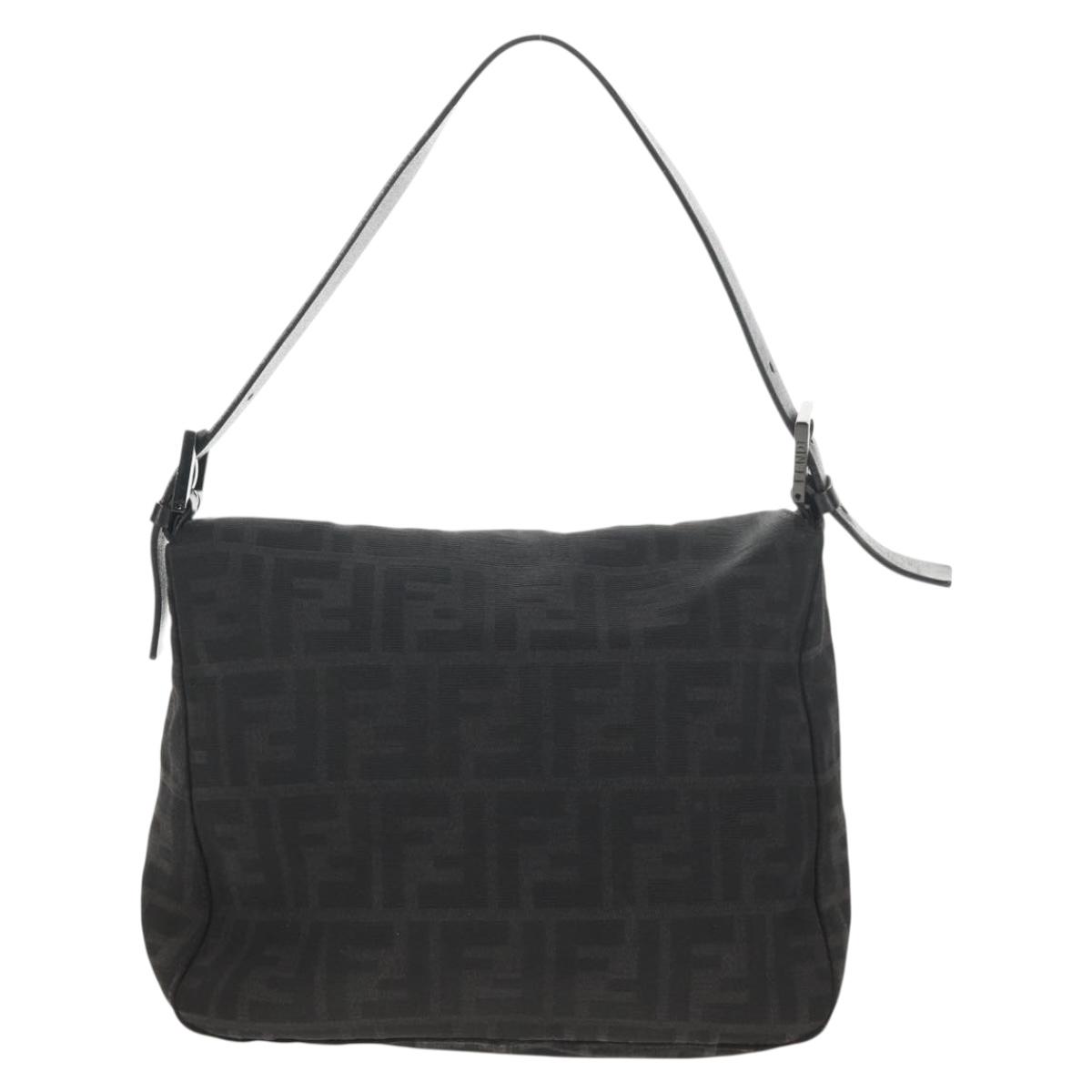 FENDI Zucca Canvas Mamma Baguette Shoulder Bag Black Silver Auth yk19531V
