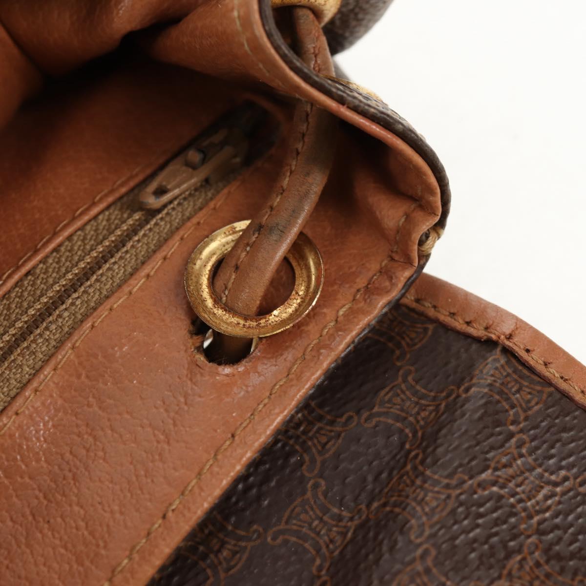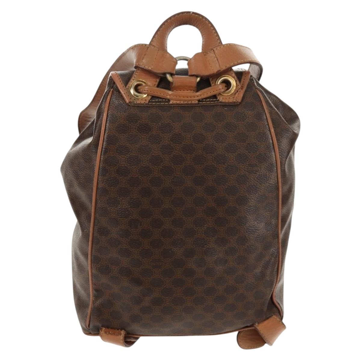 CELINE Macadam Canvas Backpack PVC Leather Brown Gold Auth bs31713