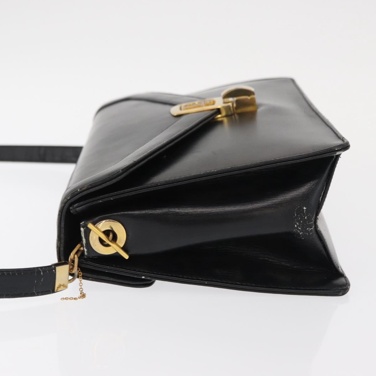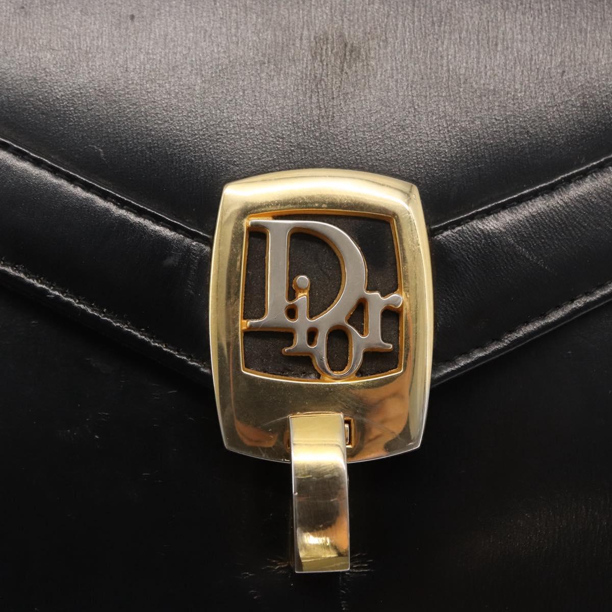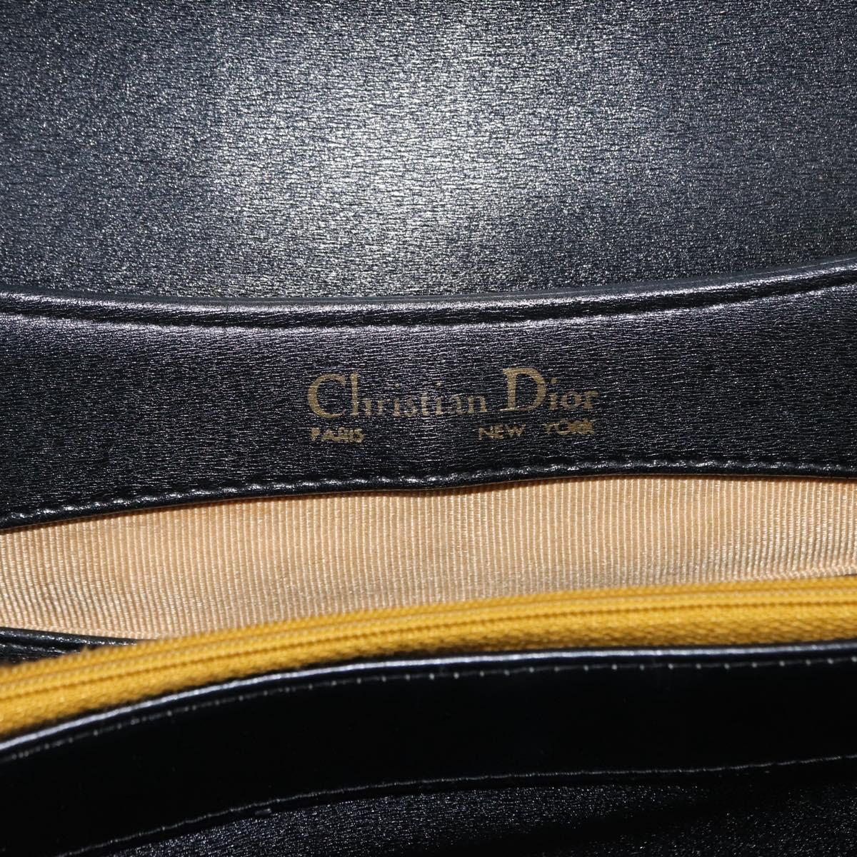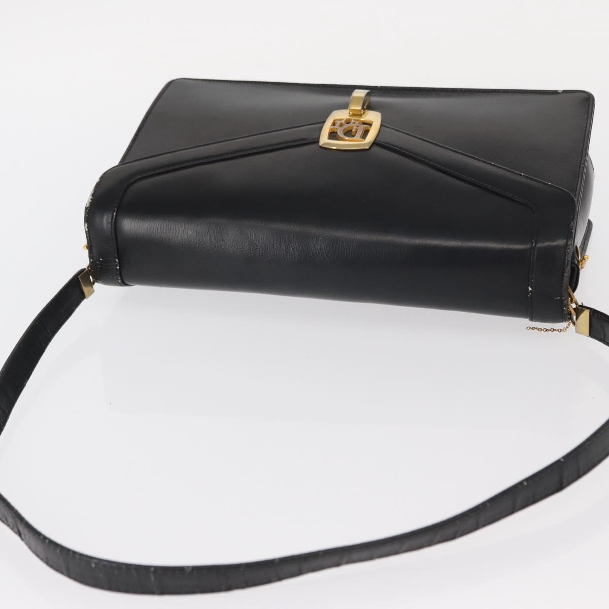 Christian Dior Shoulder Bag Leather Black Gold Auth BA8701