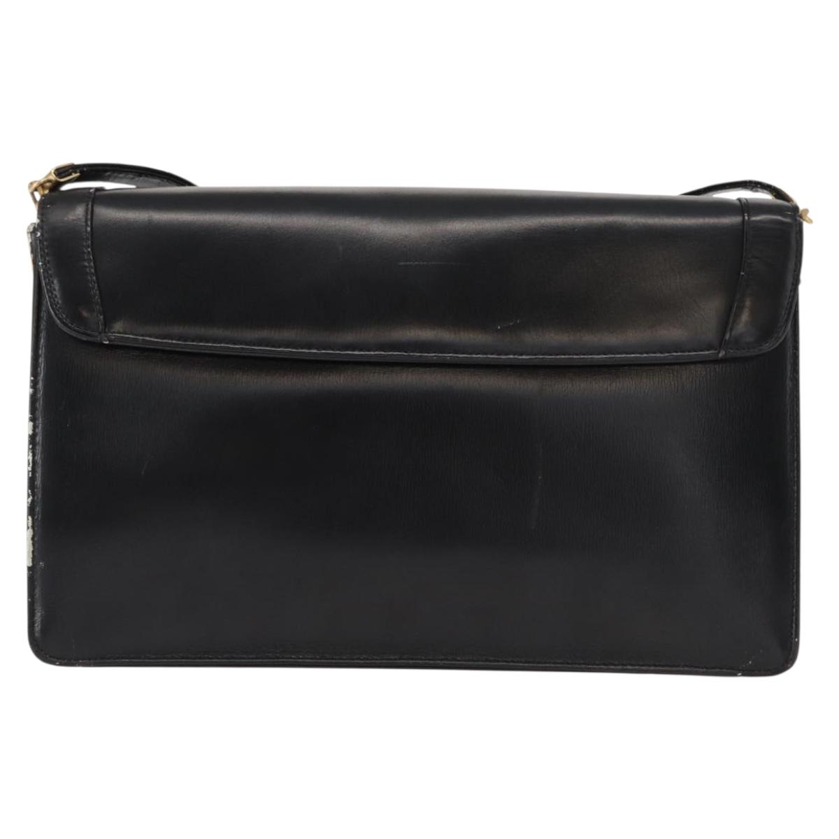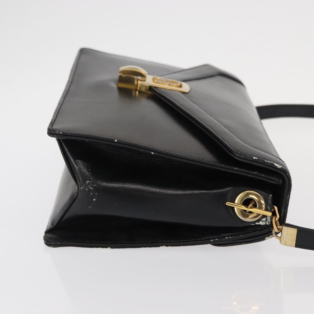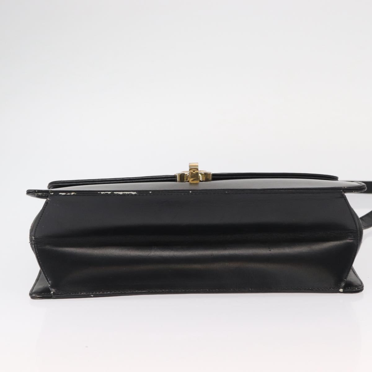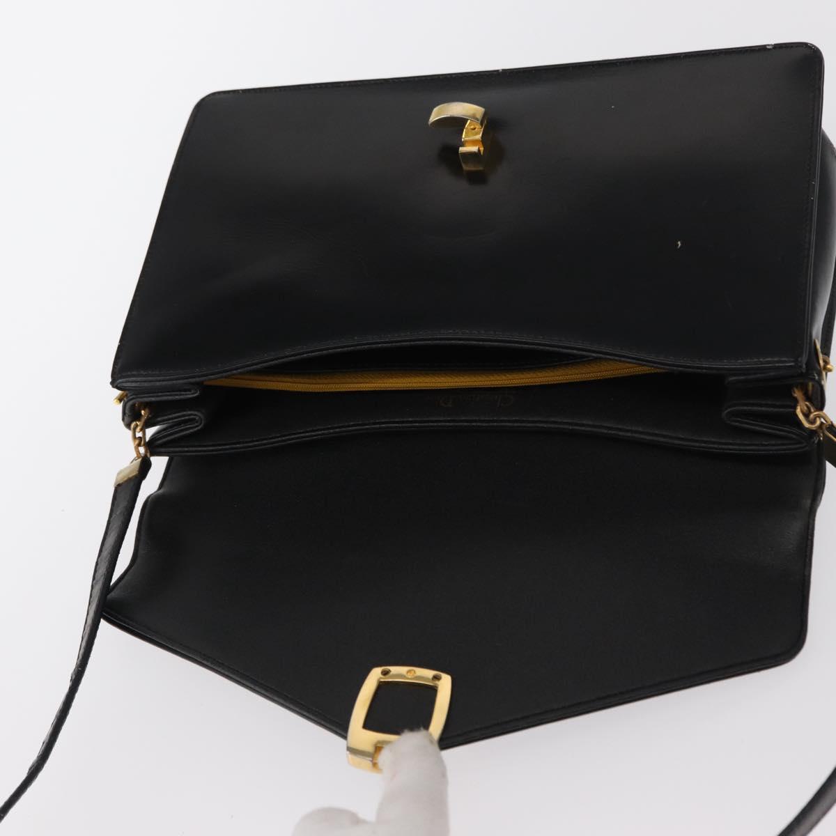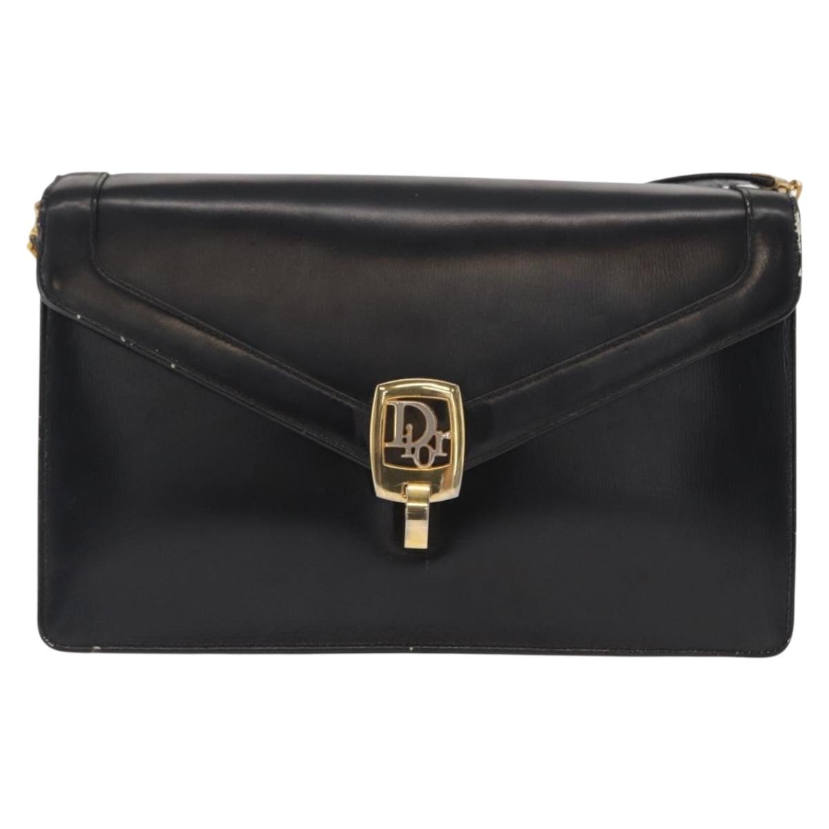 Christian Dior Shoulder Bag Leather Black Gold Auth BA8701