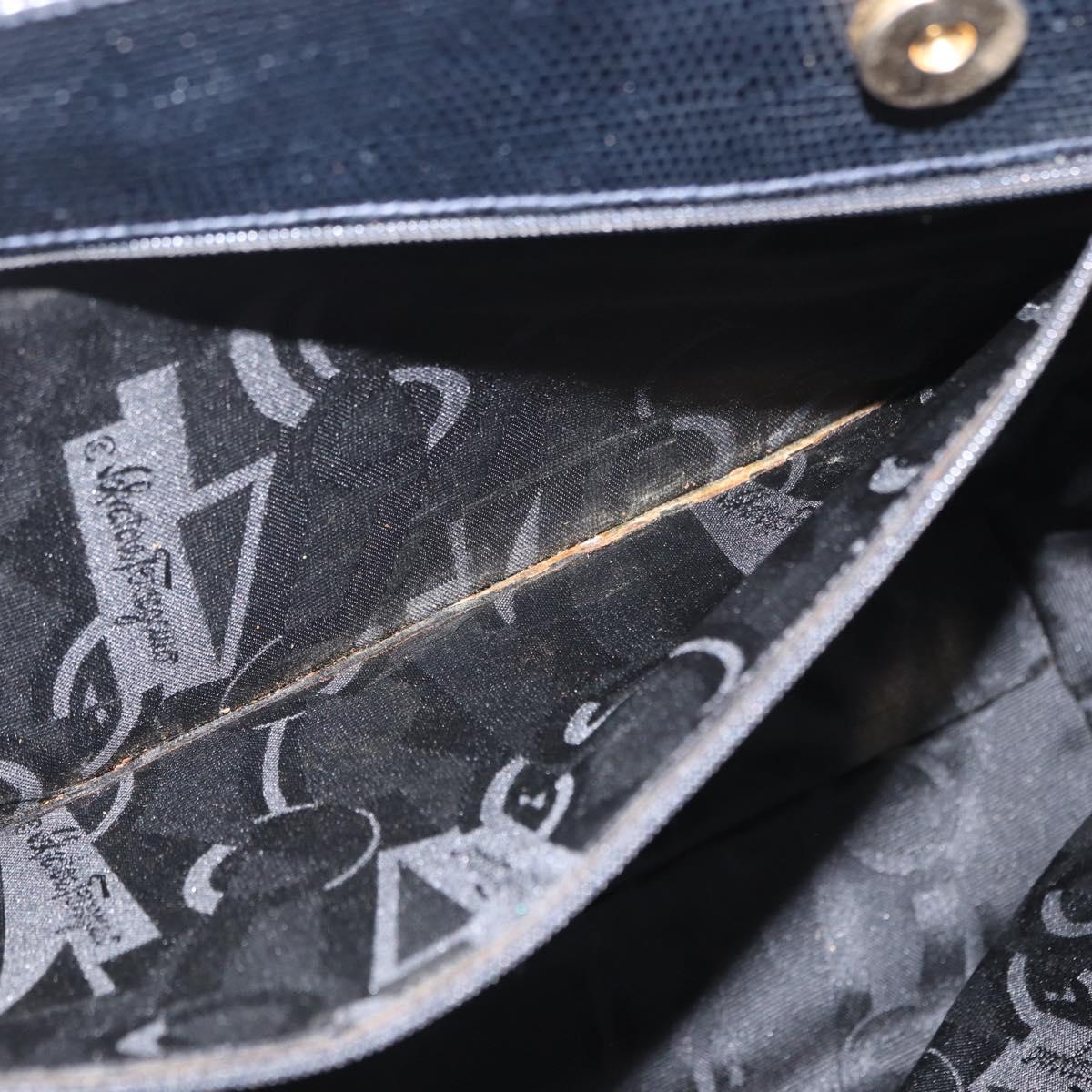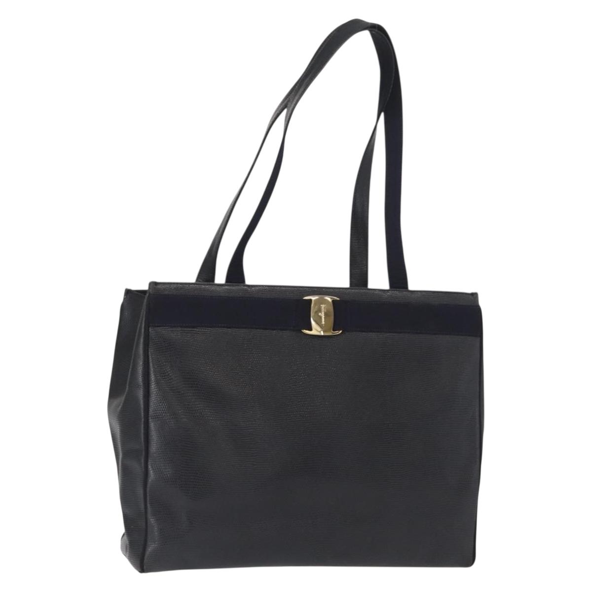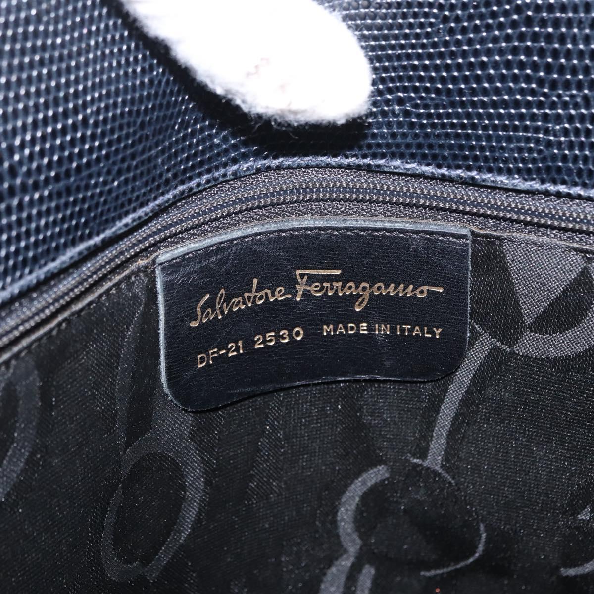 Salvatore Ferragamo Vala Tote Bag Leather Navy Gold Auth BA8751