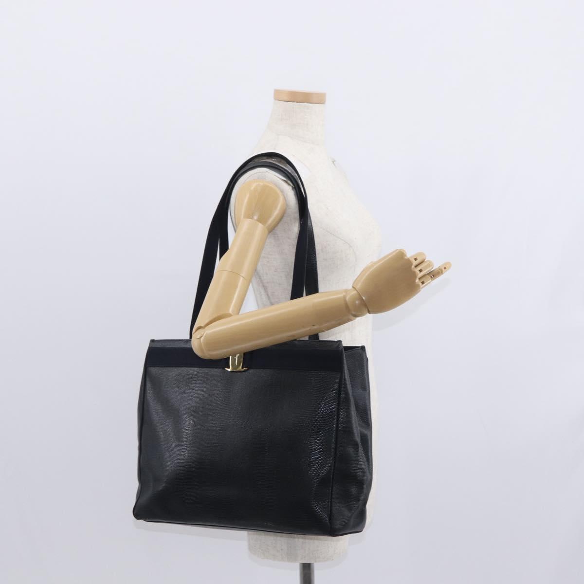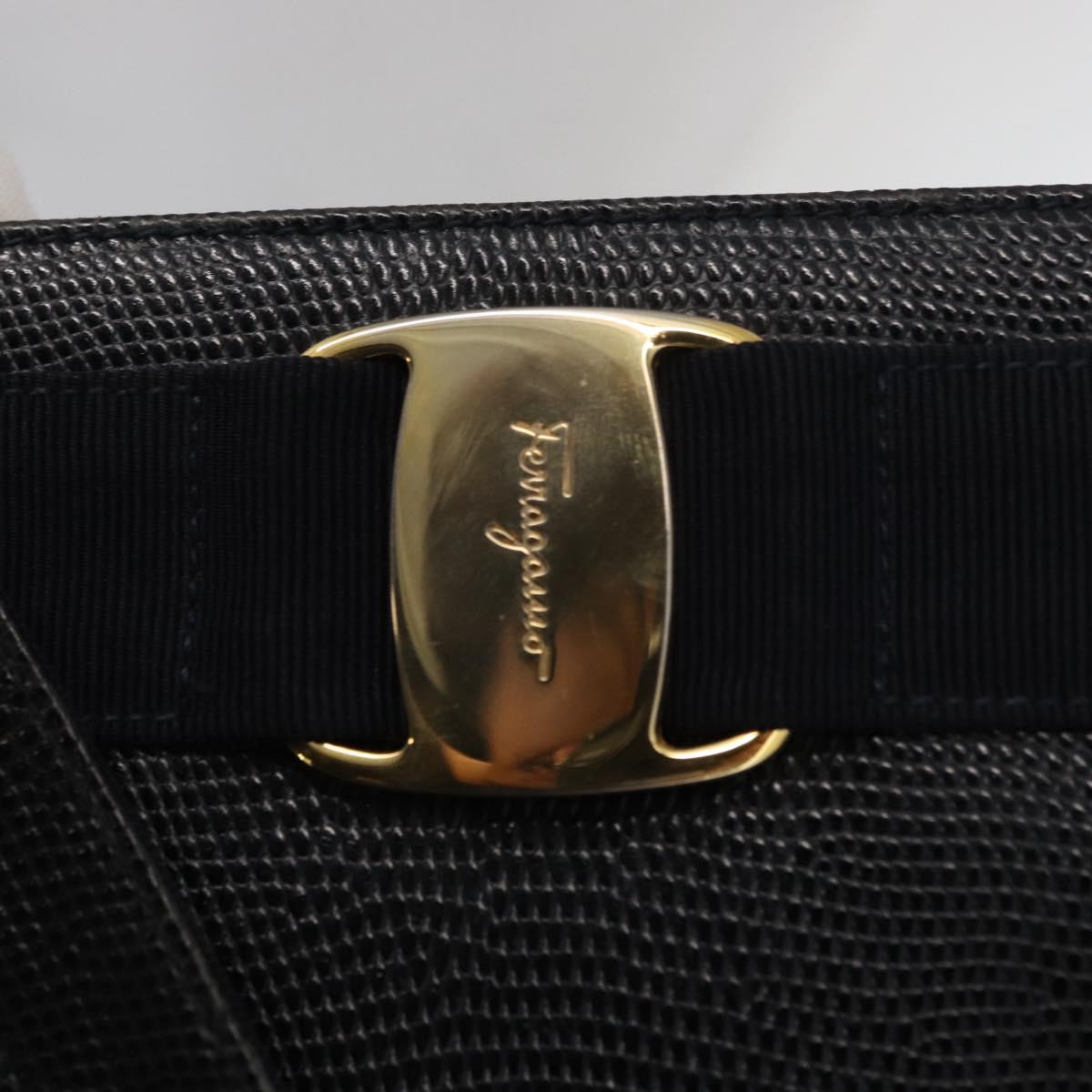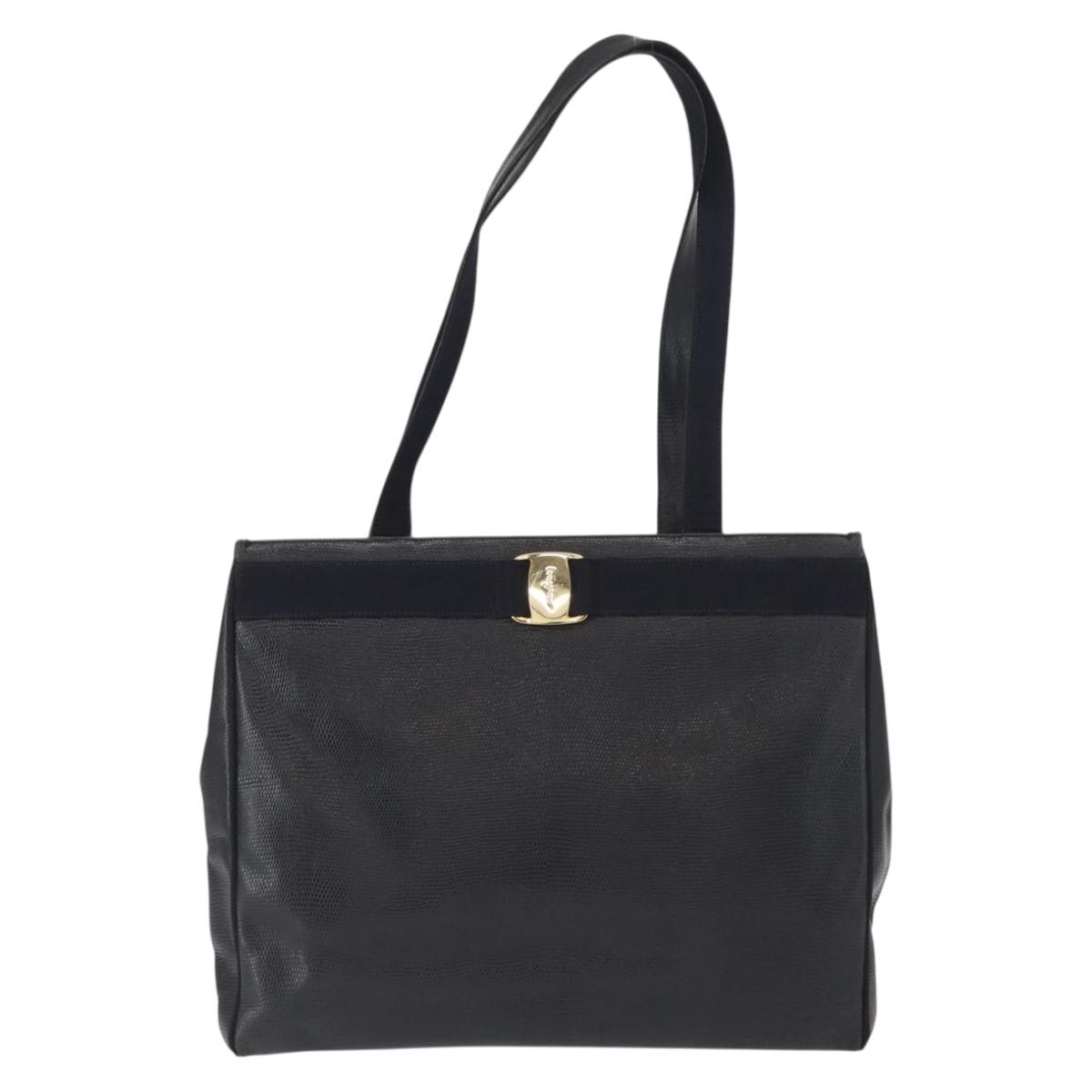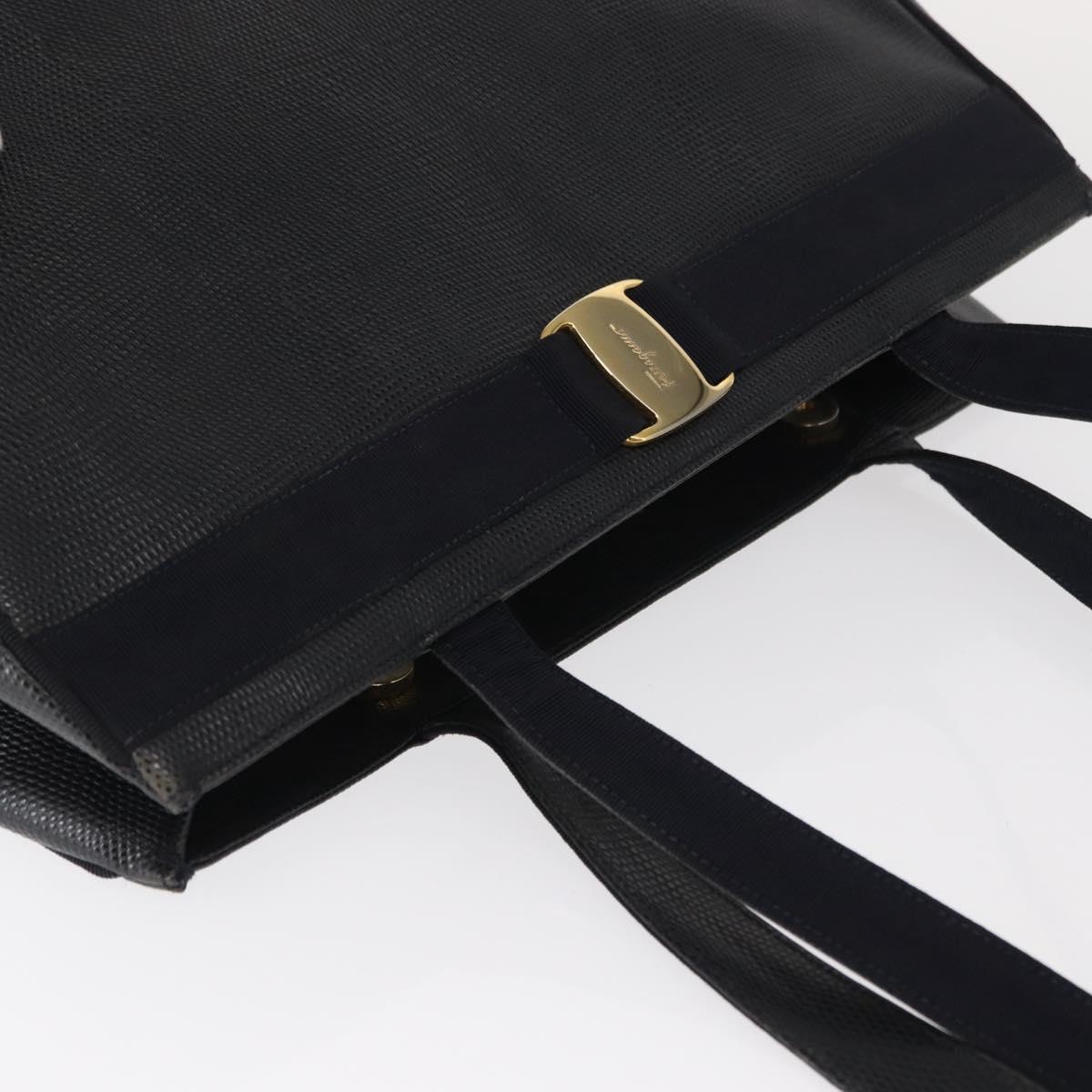 Salvatore Ferragamo Vala Tote Bag Leather Navy Gold Auth BA8751