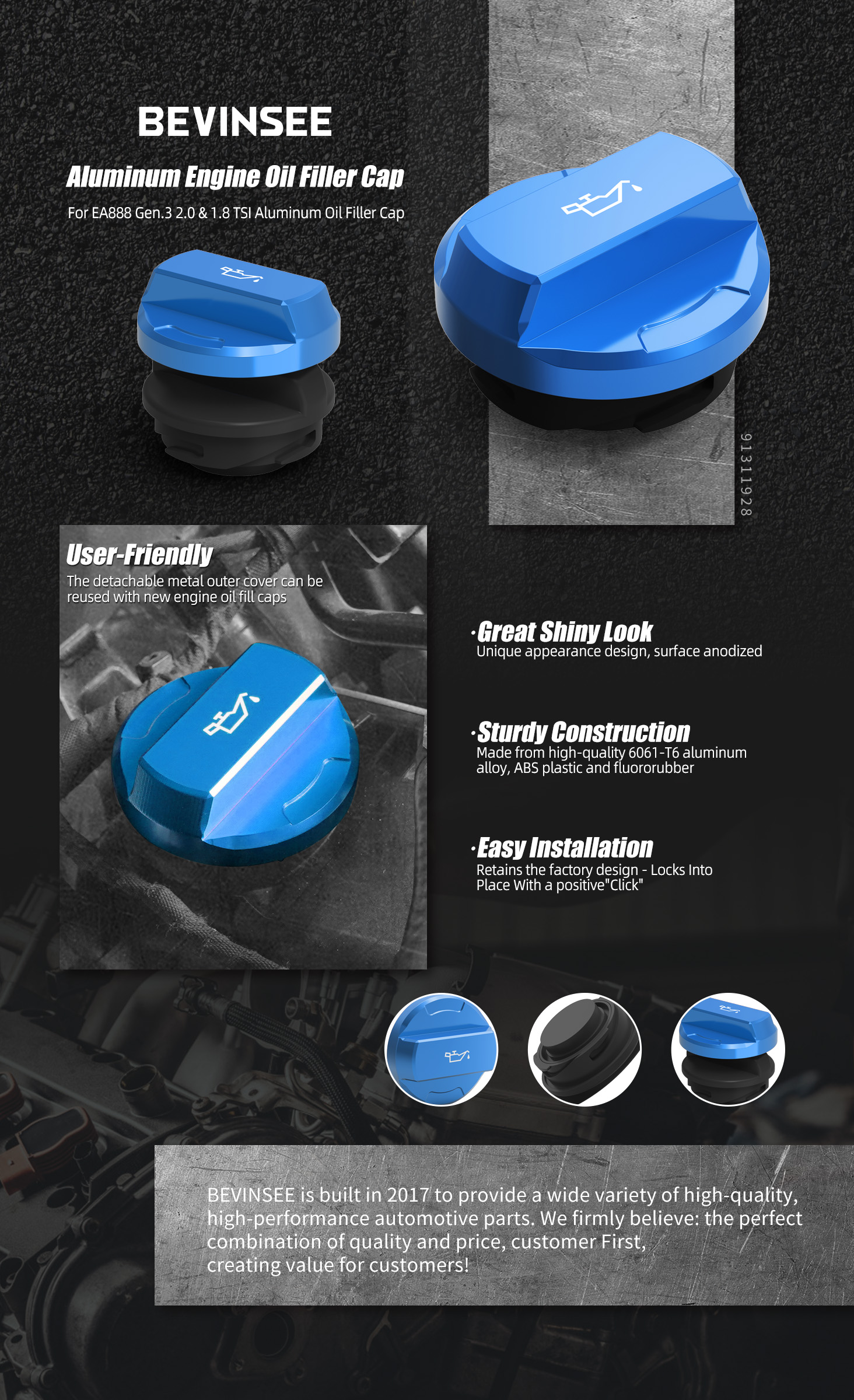 【Reusable Metal Cover】The detachable metal outer cover can be reused with new engine oil filler caps, providing added value and convenience for long-term use.