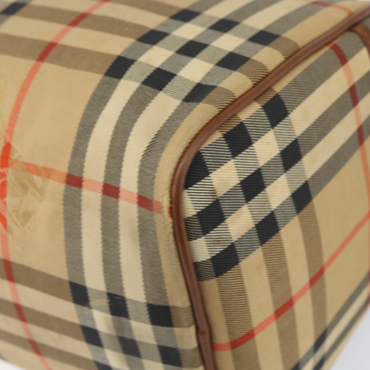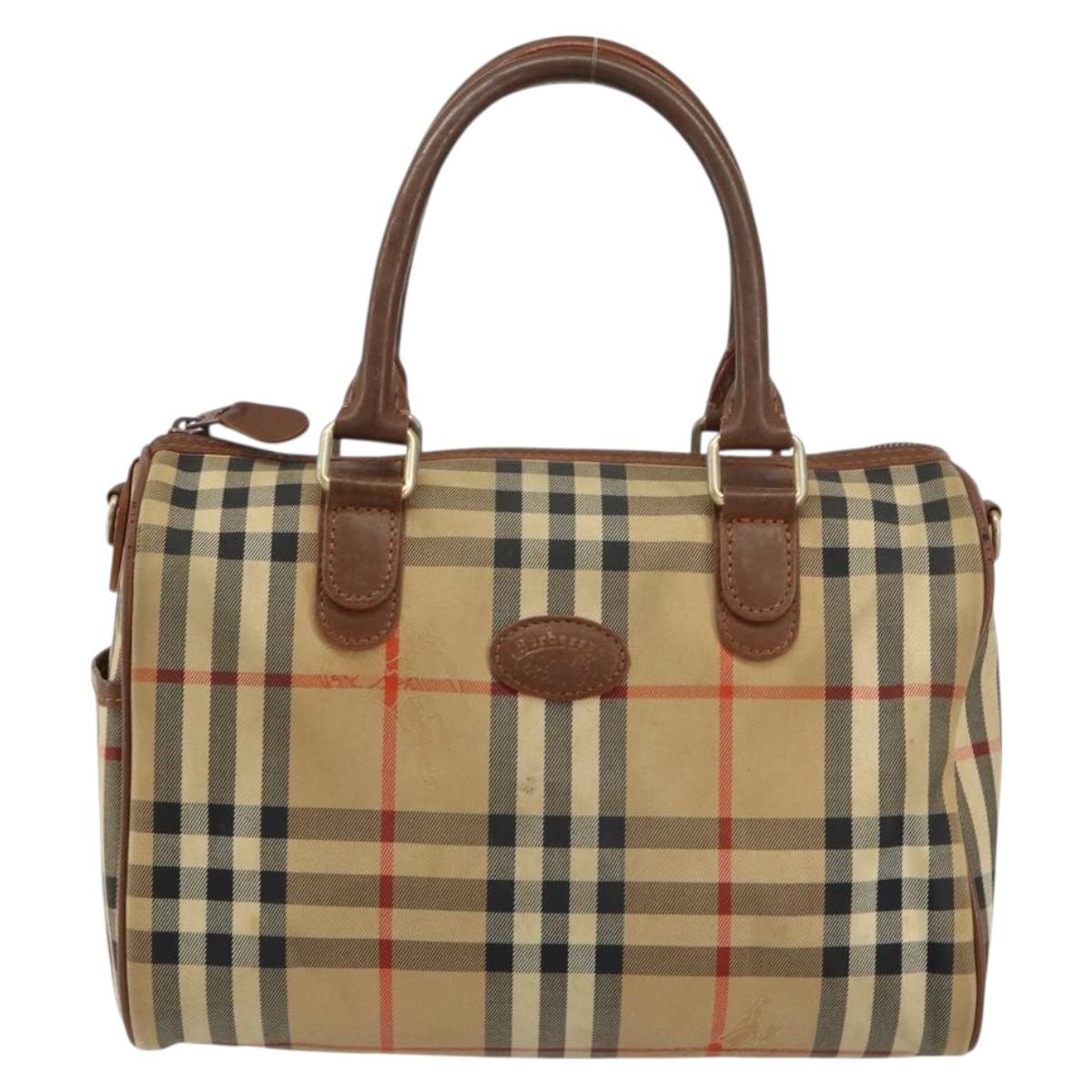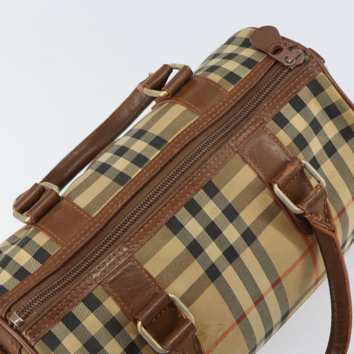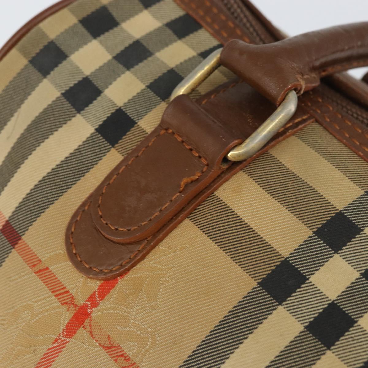 Burberrys Nova Check Hand Bag Canvas Leather Beige Gold Auth mr1638