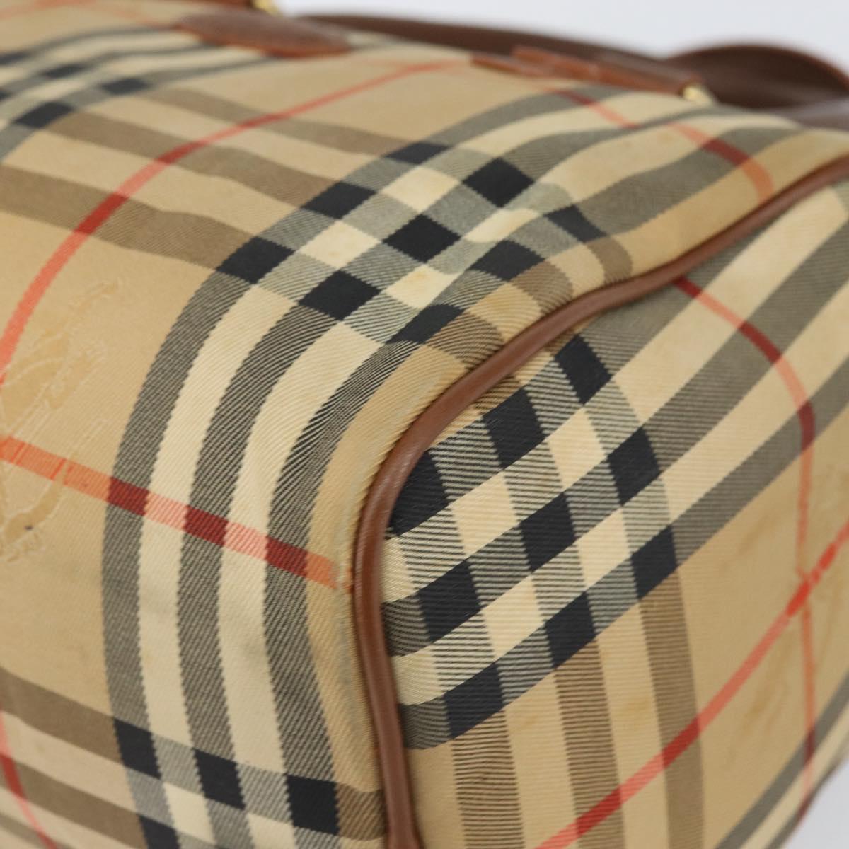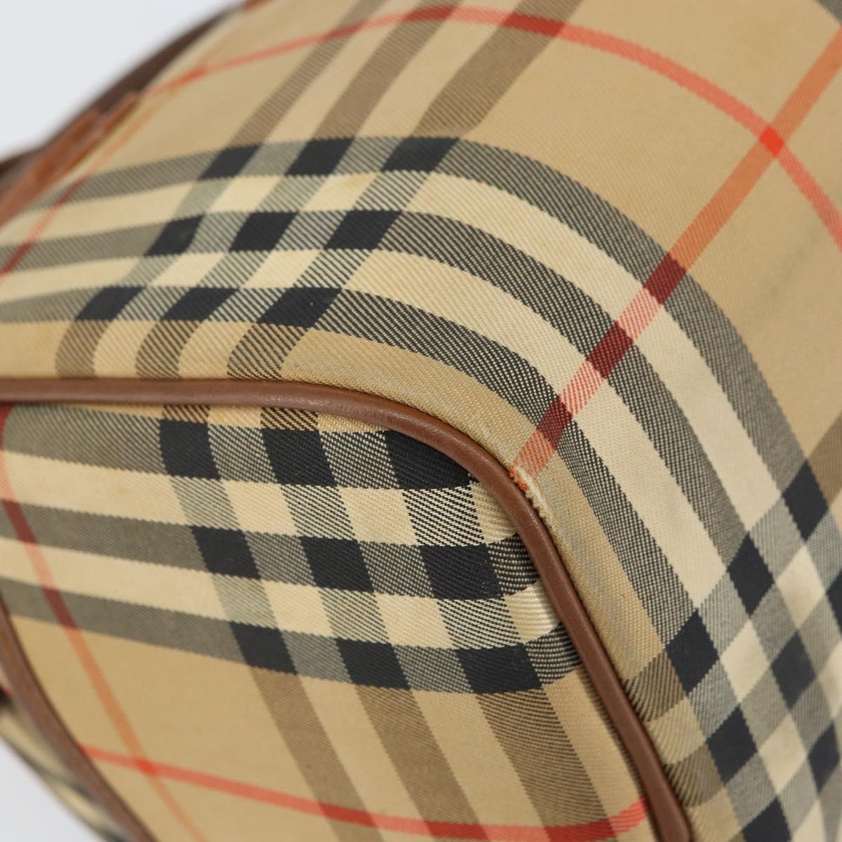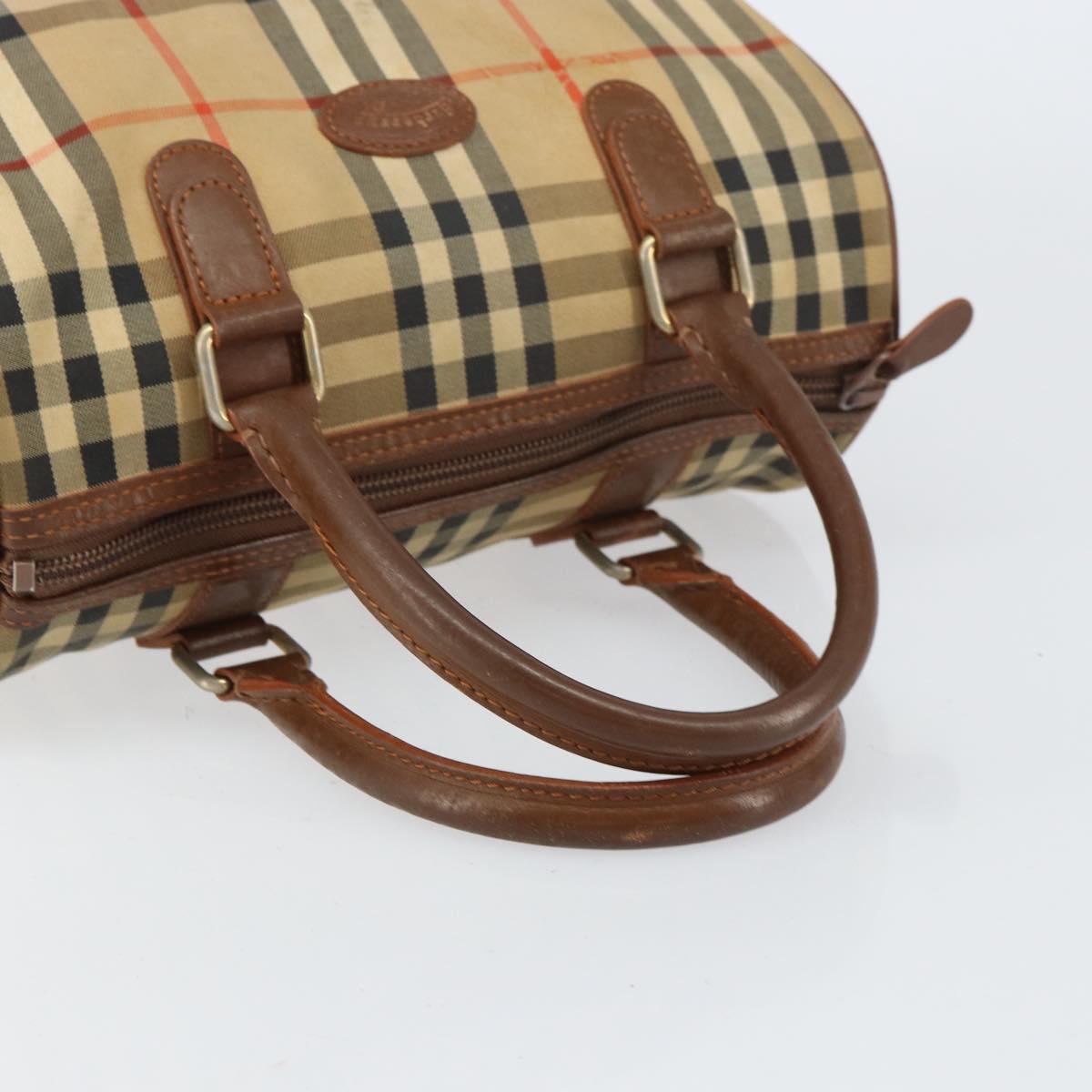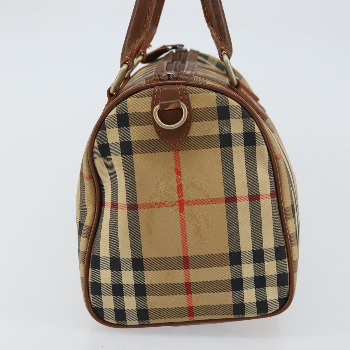 Burberrys Nova Check Hand Bag Canvas Leather Beige Gold Auth mr1638