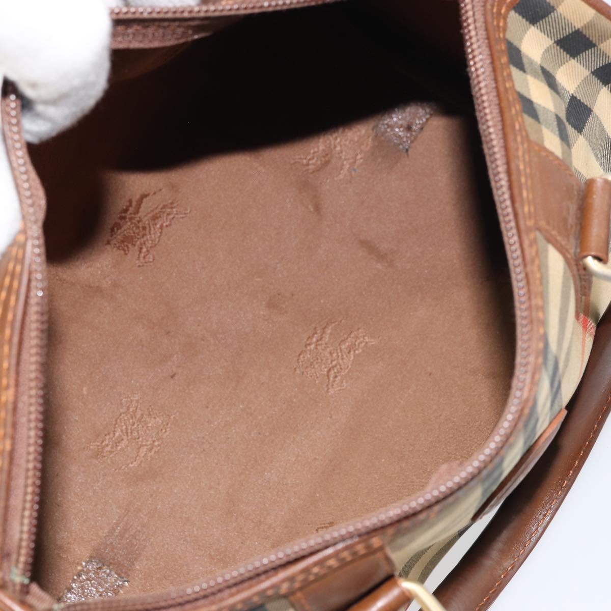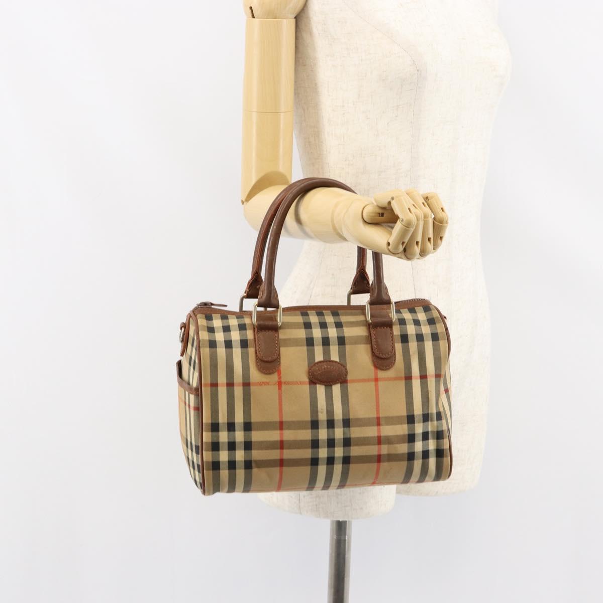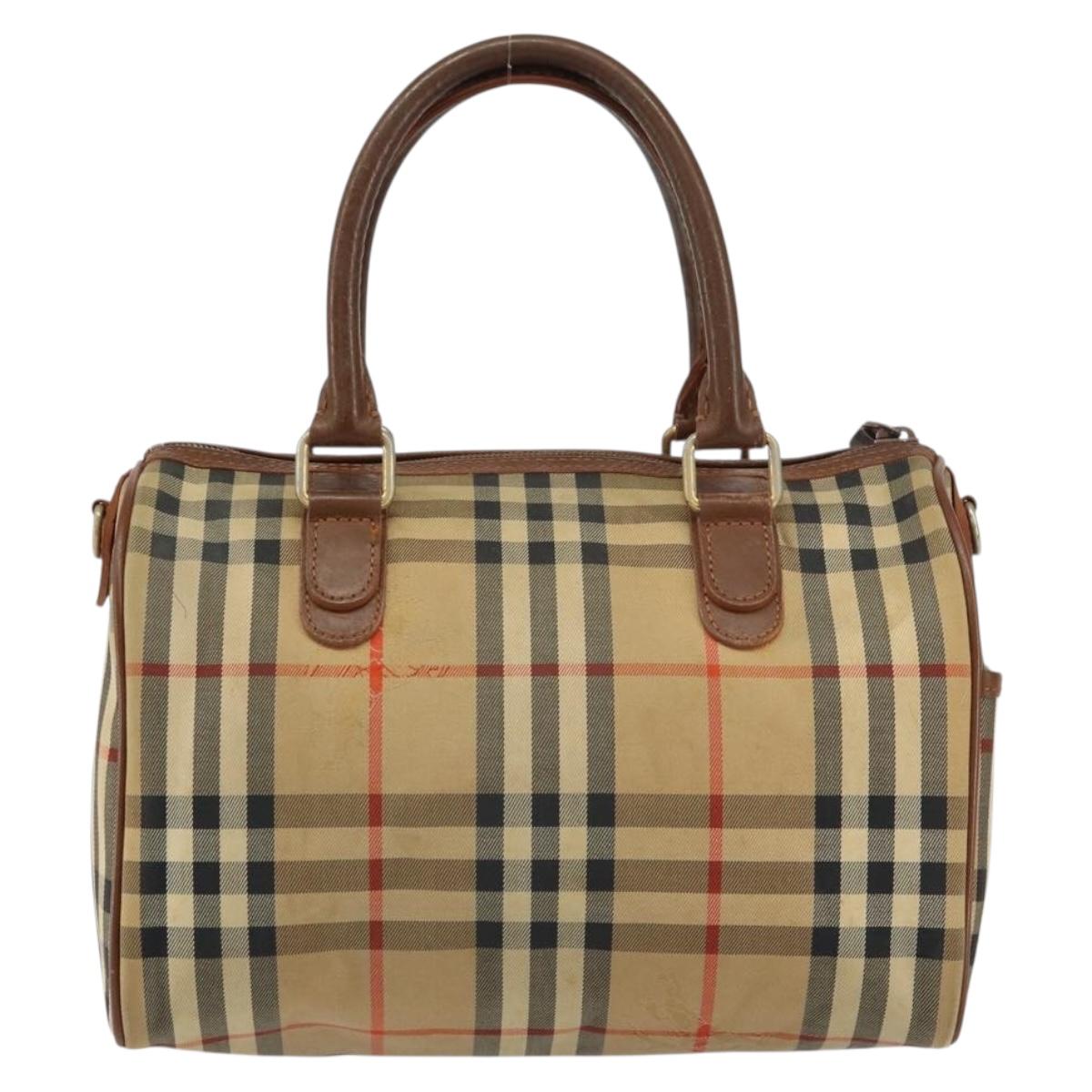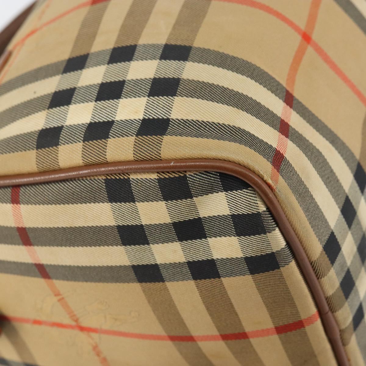 Burberrys Nova Check Hand Bag Canvas Leather Beige Gold Auth mr1638
