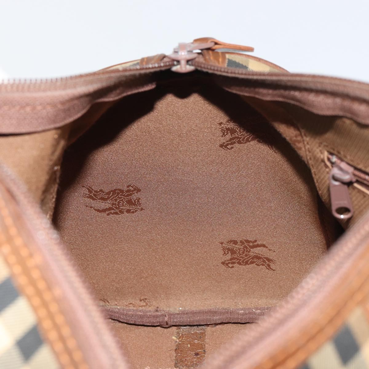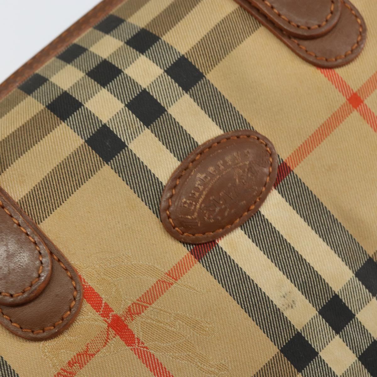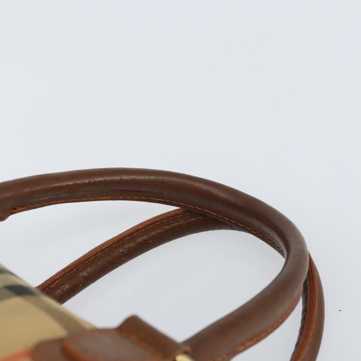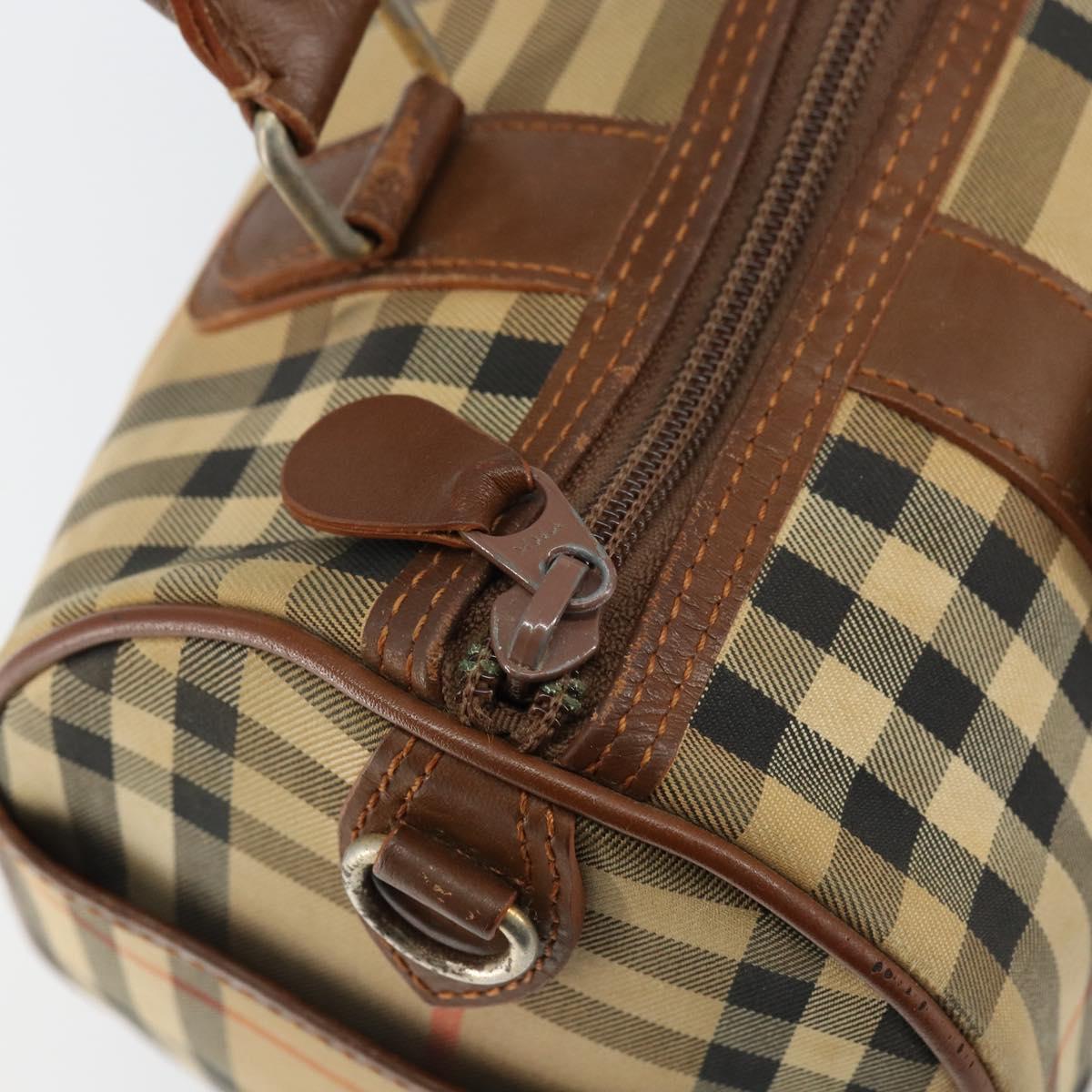 Burberrys Nova Check Hand Bag Canvas Leather Beige Gold Auth mr1638