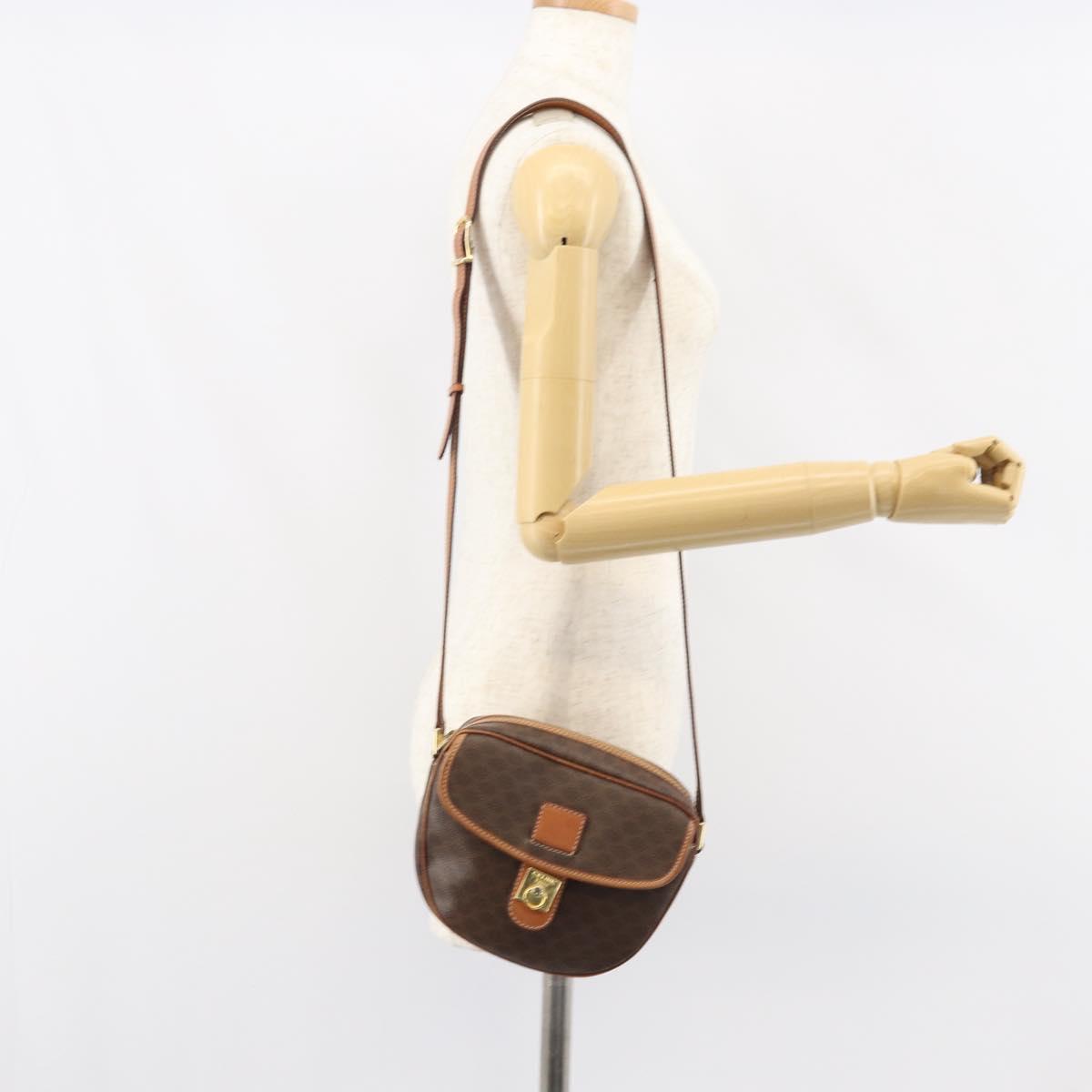 CELINE Macadam Canvas Shoulder Bag PVC Leather Brown Gold Auth 156444