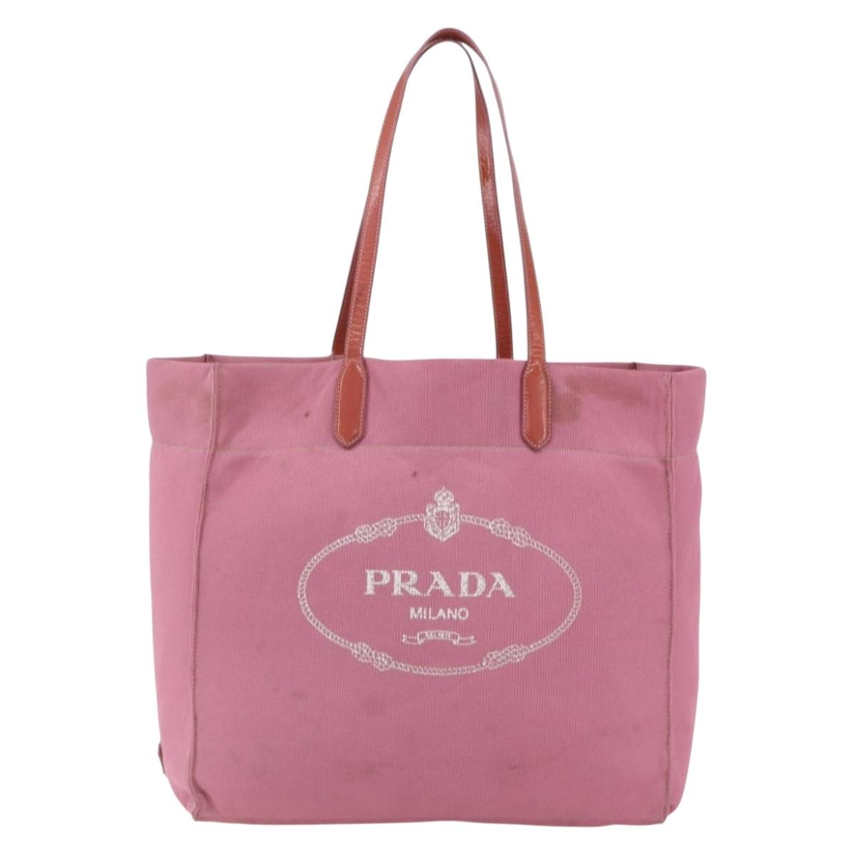 PRADA Tote Bag Canvas Pink Auth 158495