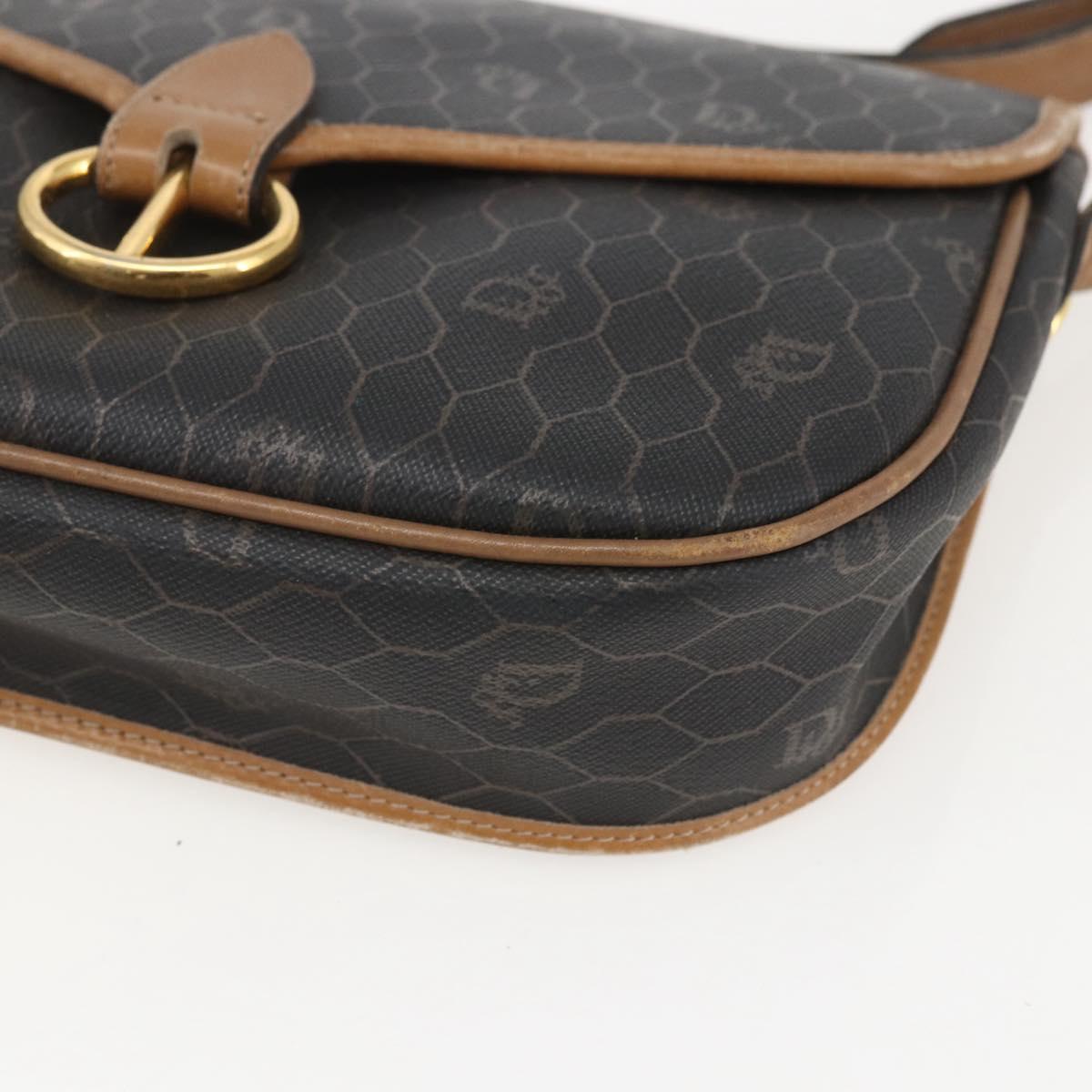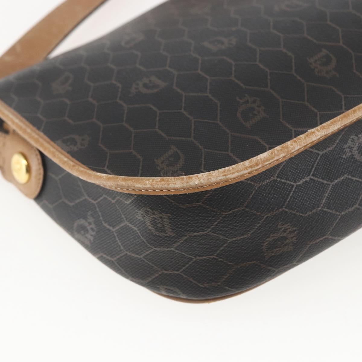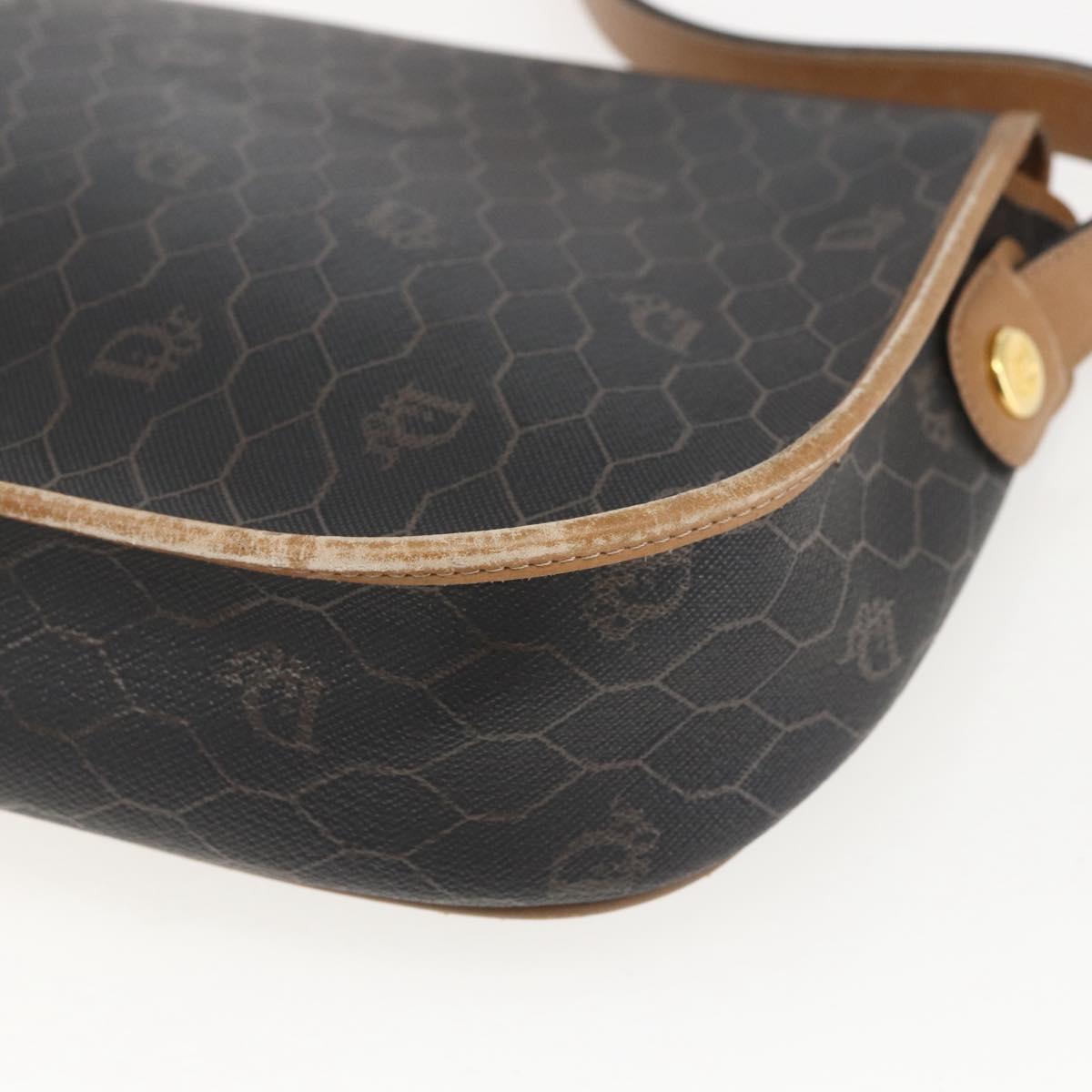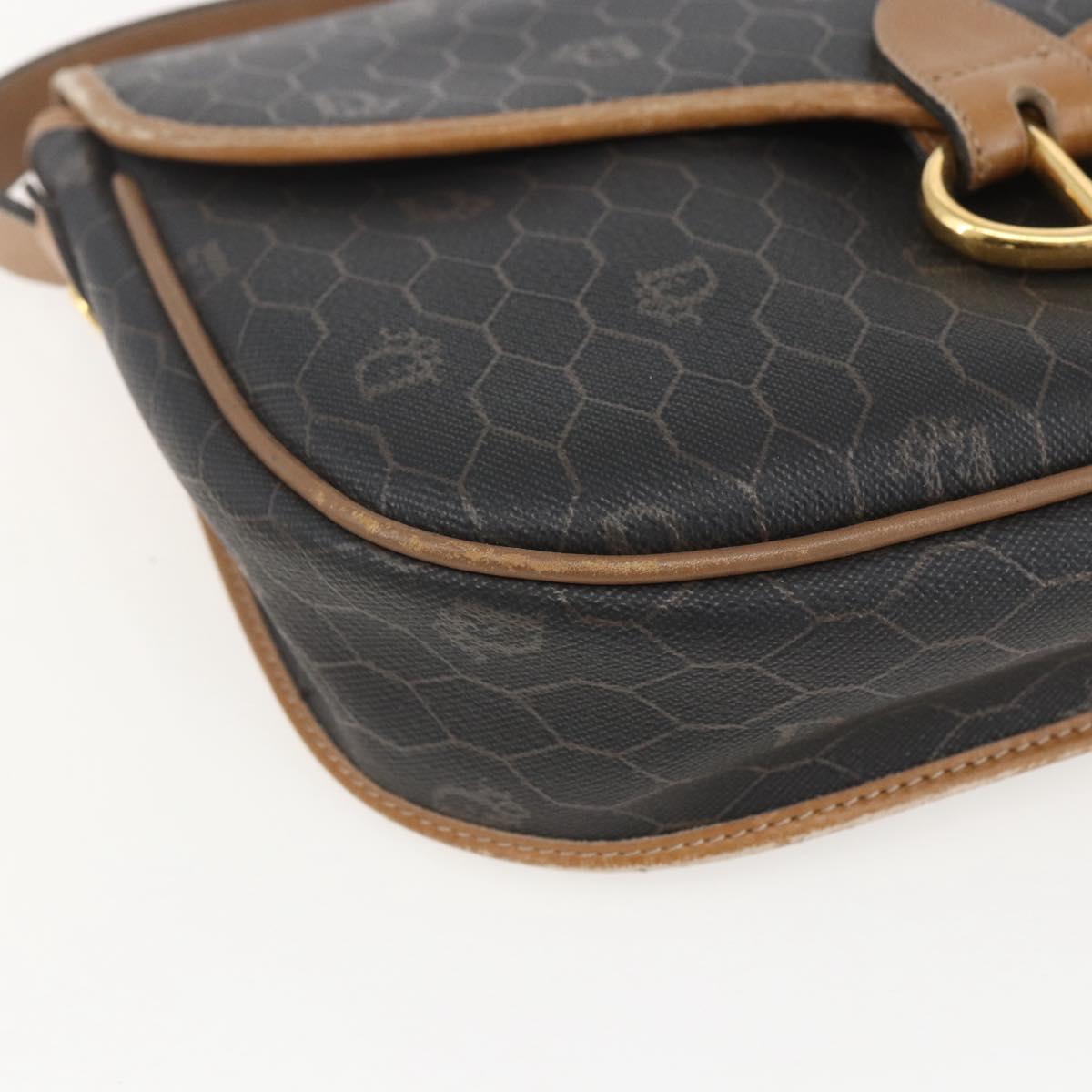 Christian Dior Honeycomb Canvas Shoulder Bag PVC Black Brown gold Auth bs31903