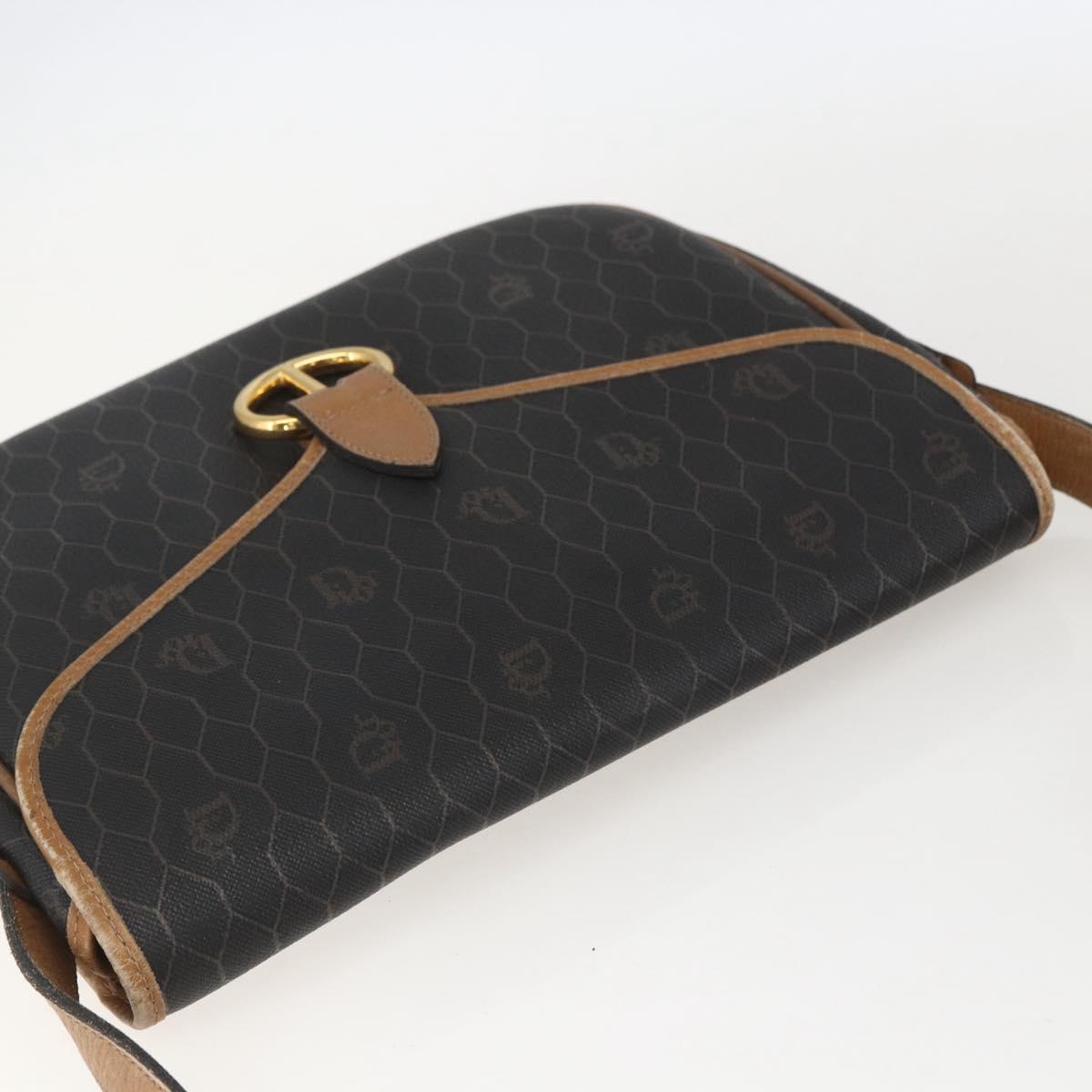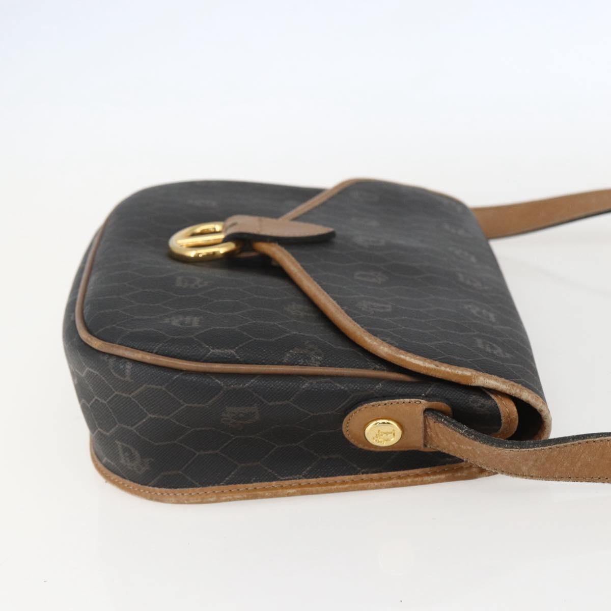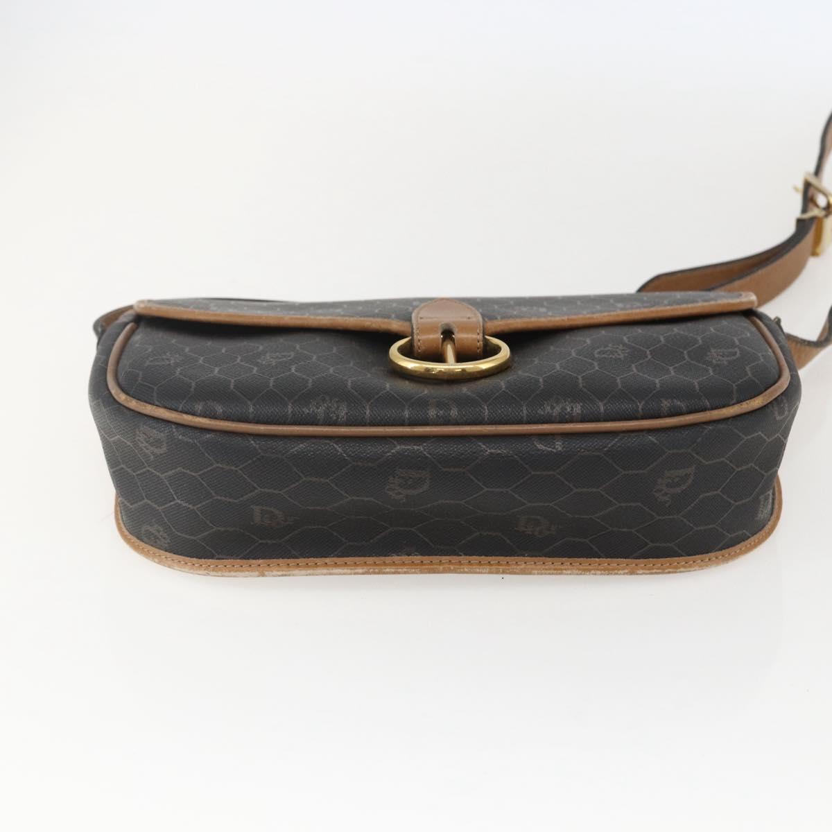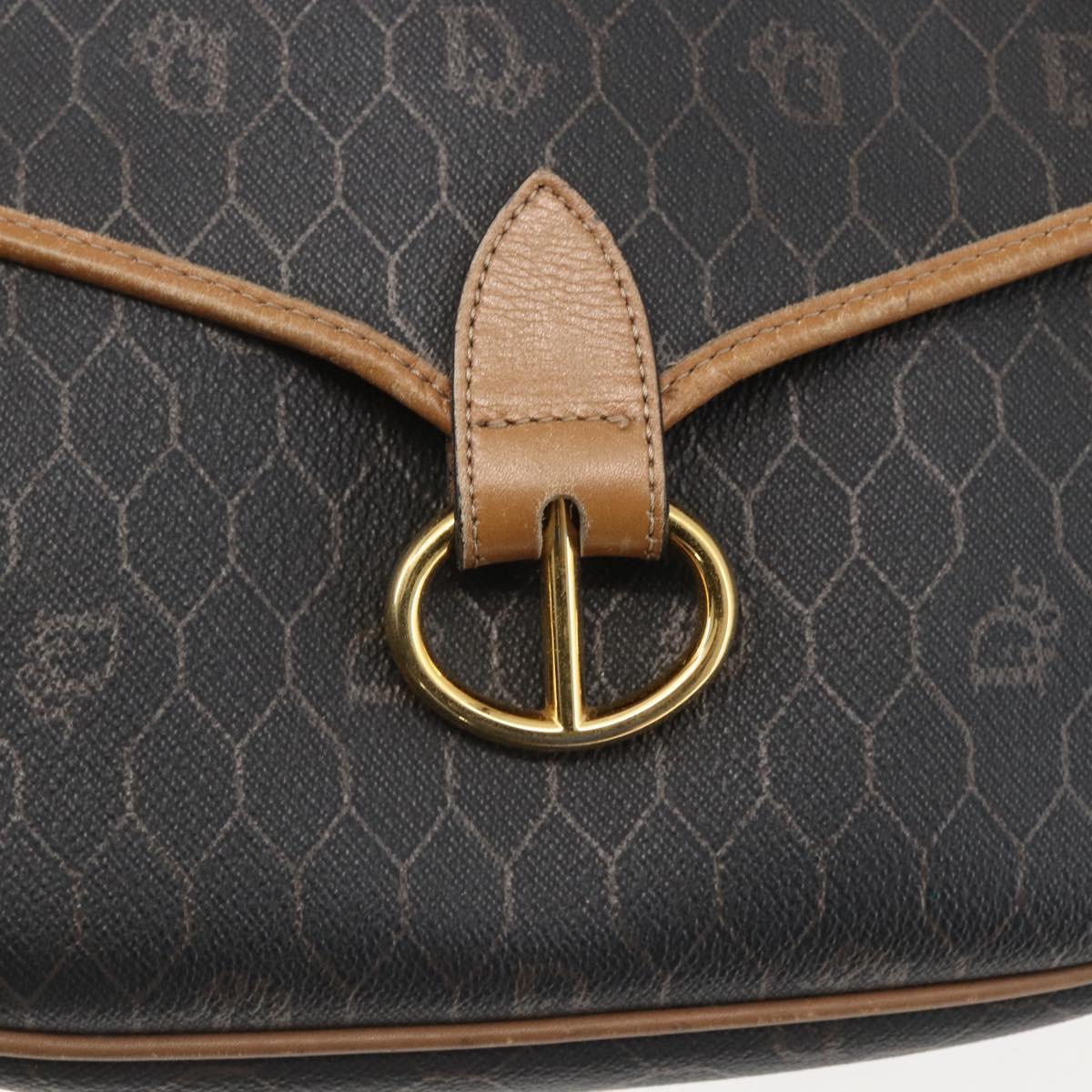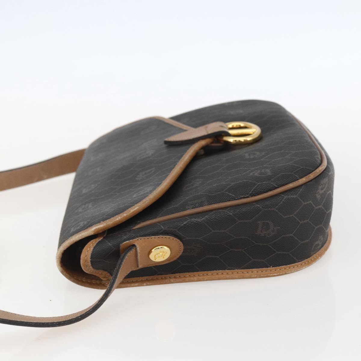 Christian Dior Honeycomb Canvas Shoulder Bag PVC Black Brown gold Auth bs31903