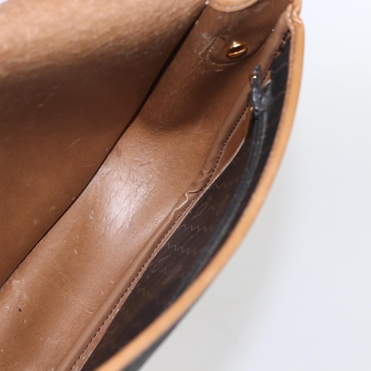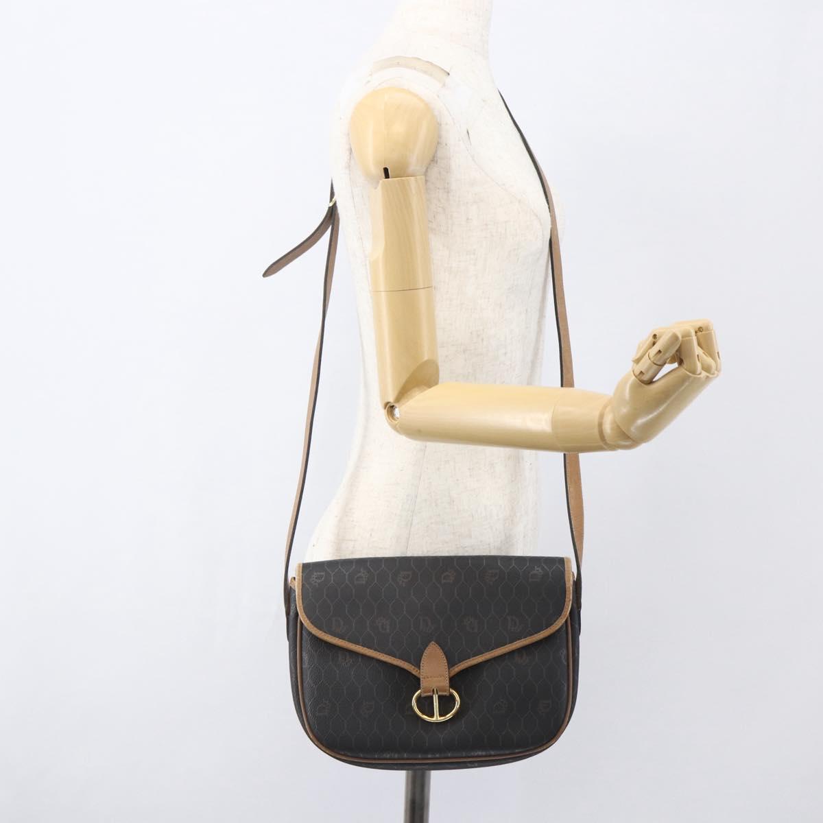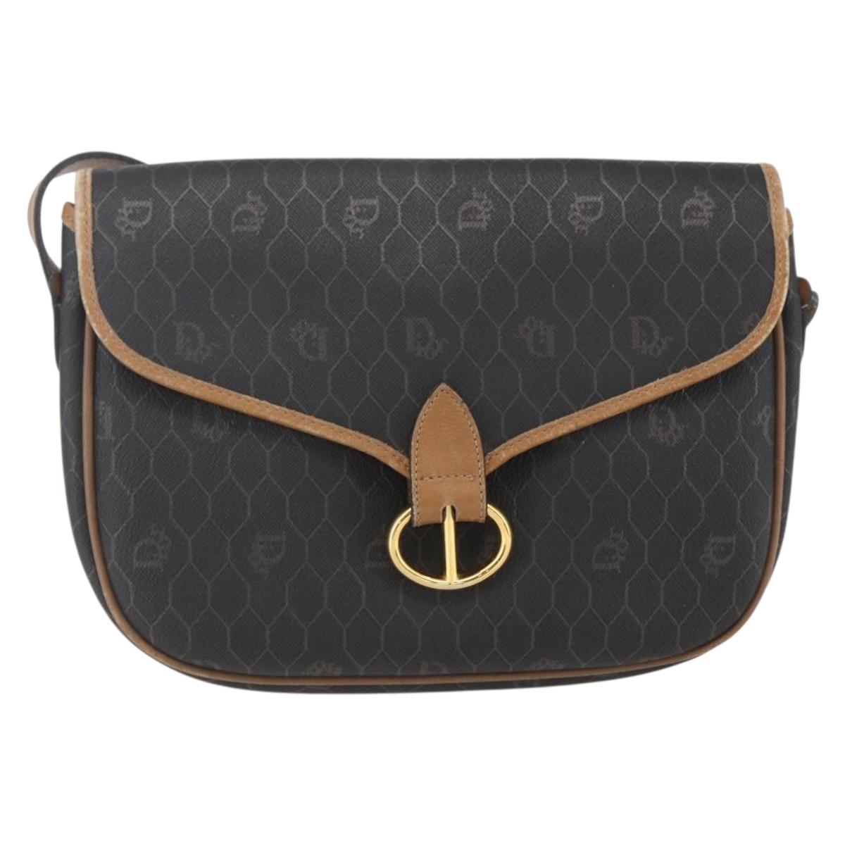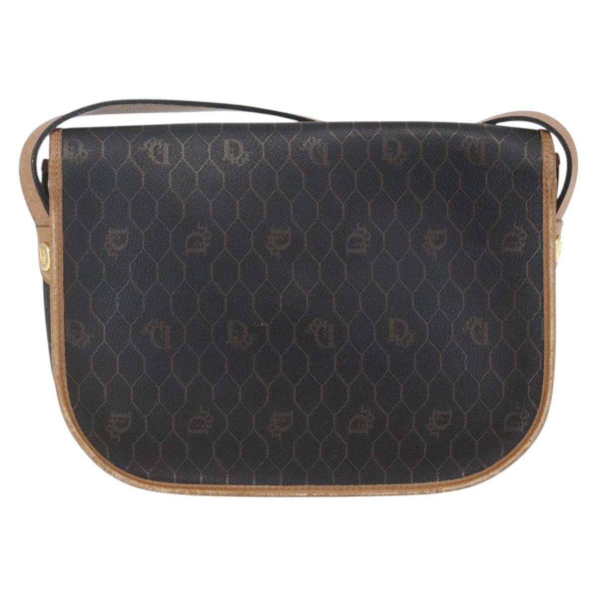 Christian Dior Honeycomb Canvas Shoulder Bag PVC Black Brown gold Auth bs31903