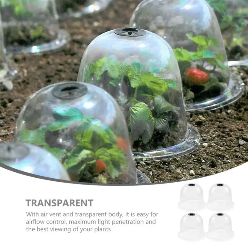 4pcs Garden Plant Dome Reusable Plant Protection Cover Transparent Seedling Insulation Cover Breathable Seedling Cover Large