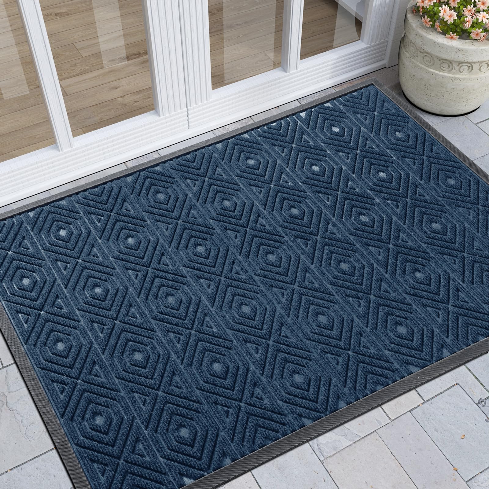 Door Mat, Outdoor Indoor Entrance Welcome Mat, Heavy Entry Front Door Mat, Stain & Fade Resistant, Low Profile, Sturdy Rubber, Easy Clean Patio Floor Mat, Waterproof, 47 x 32, Blue