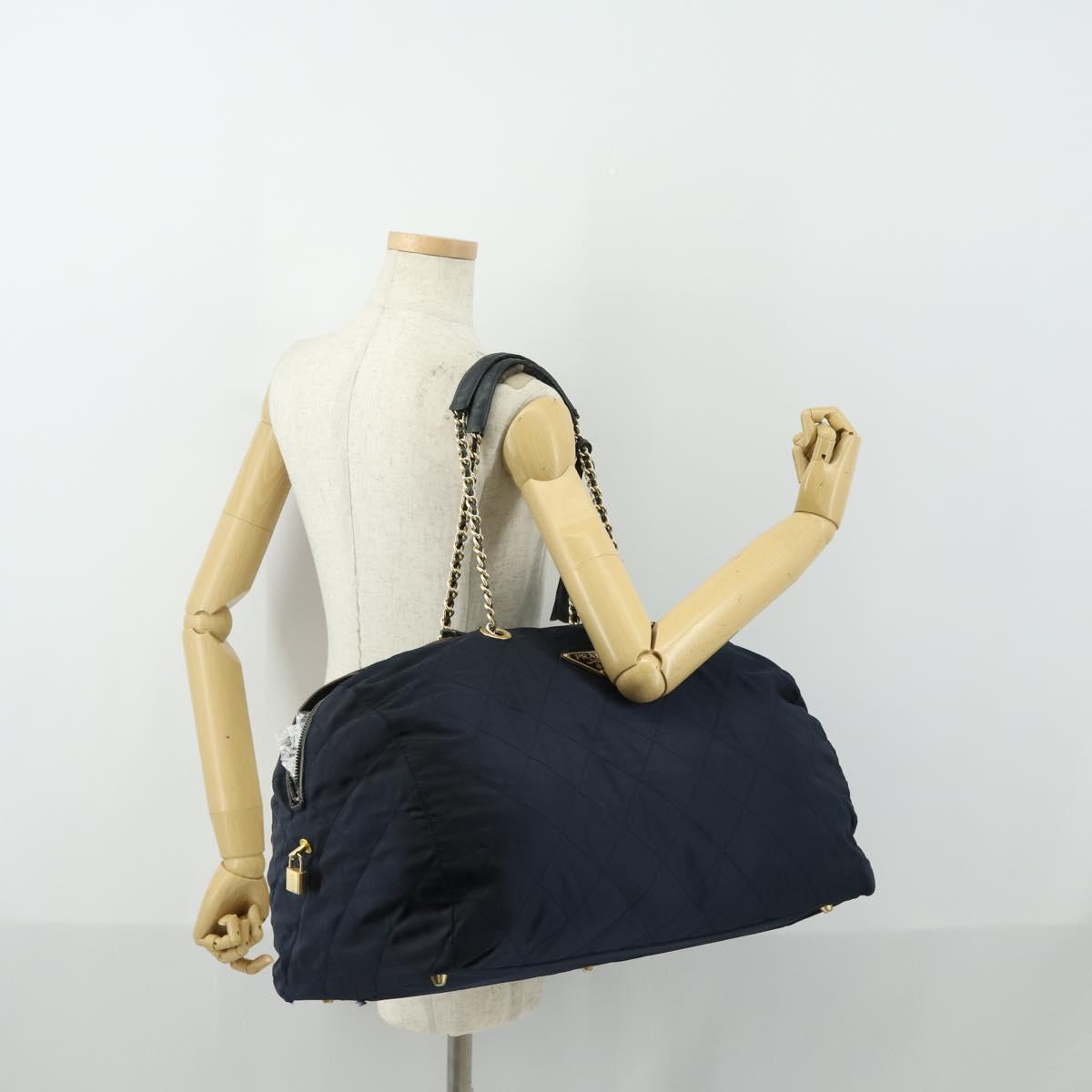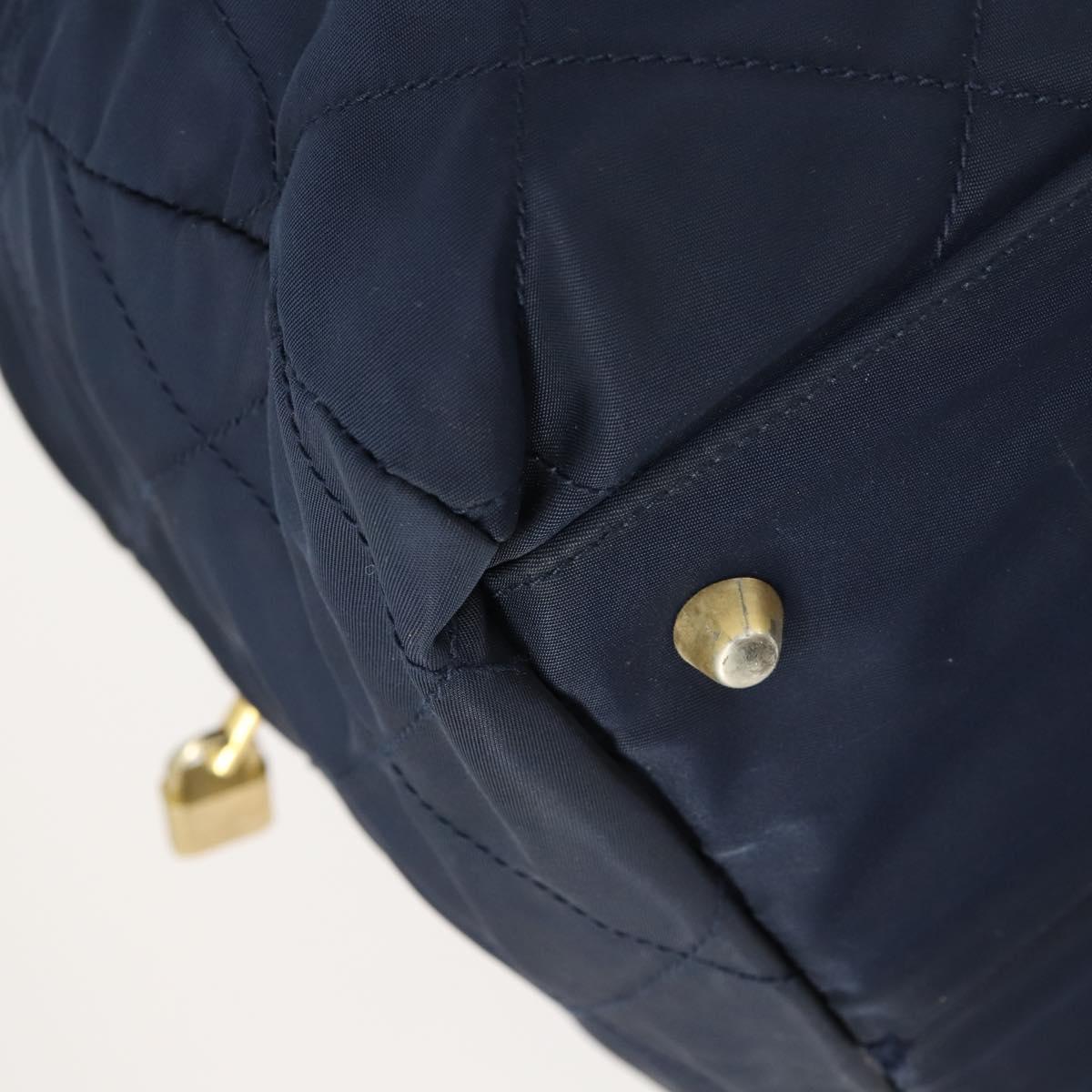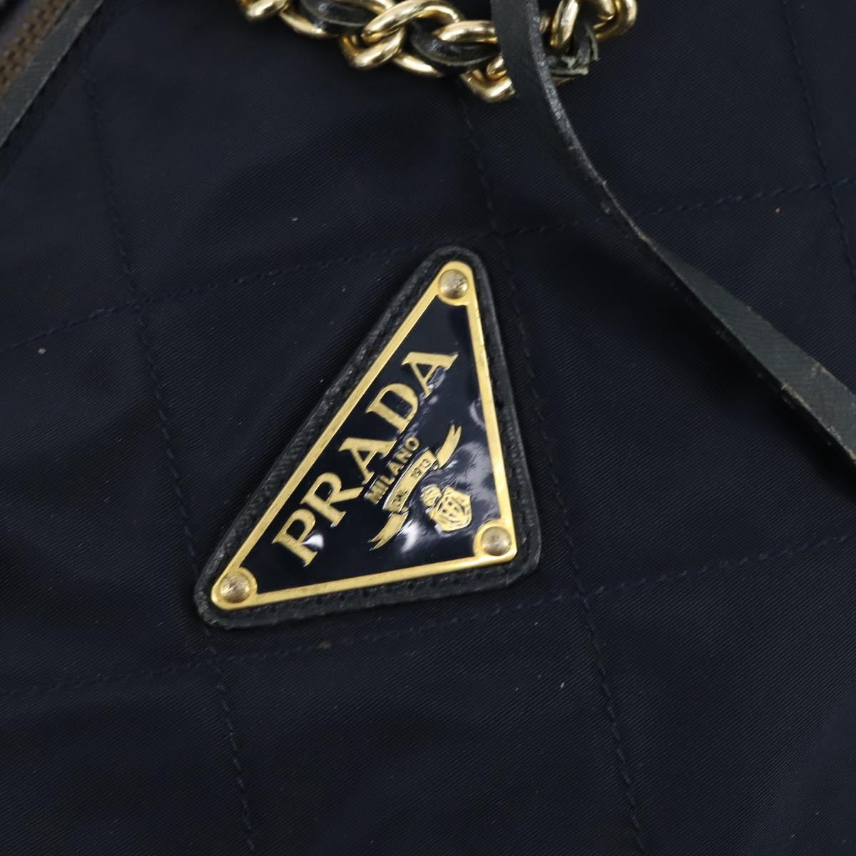 PRADA Chain Tote Bag Nylon Navy Gold Auth am10079