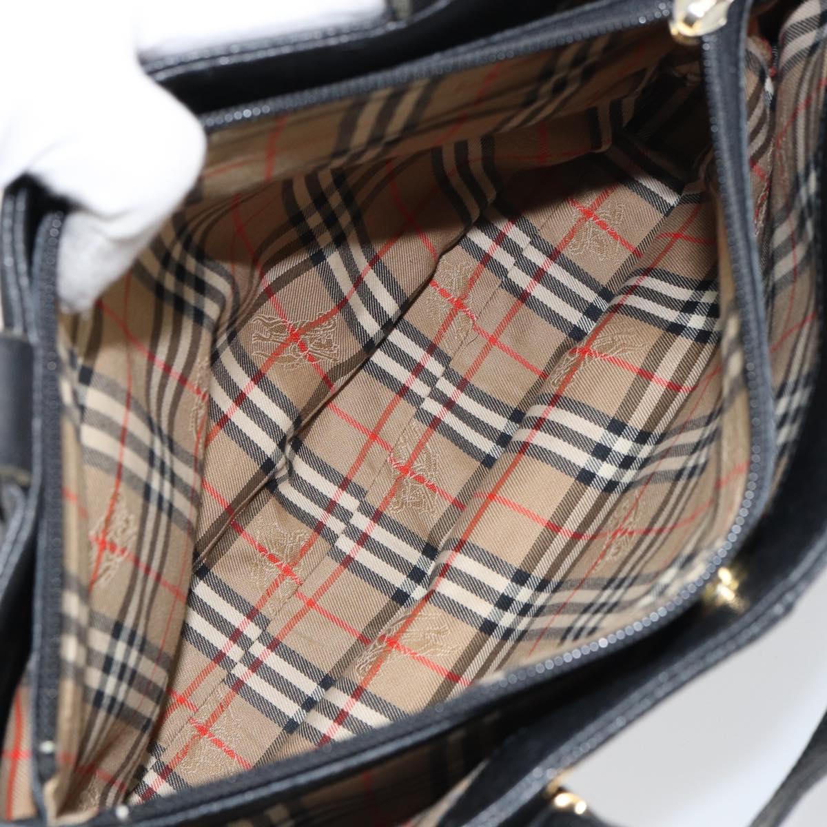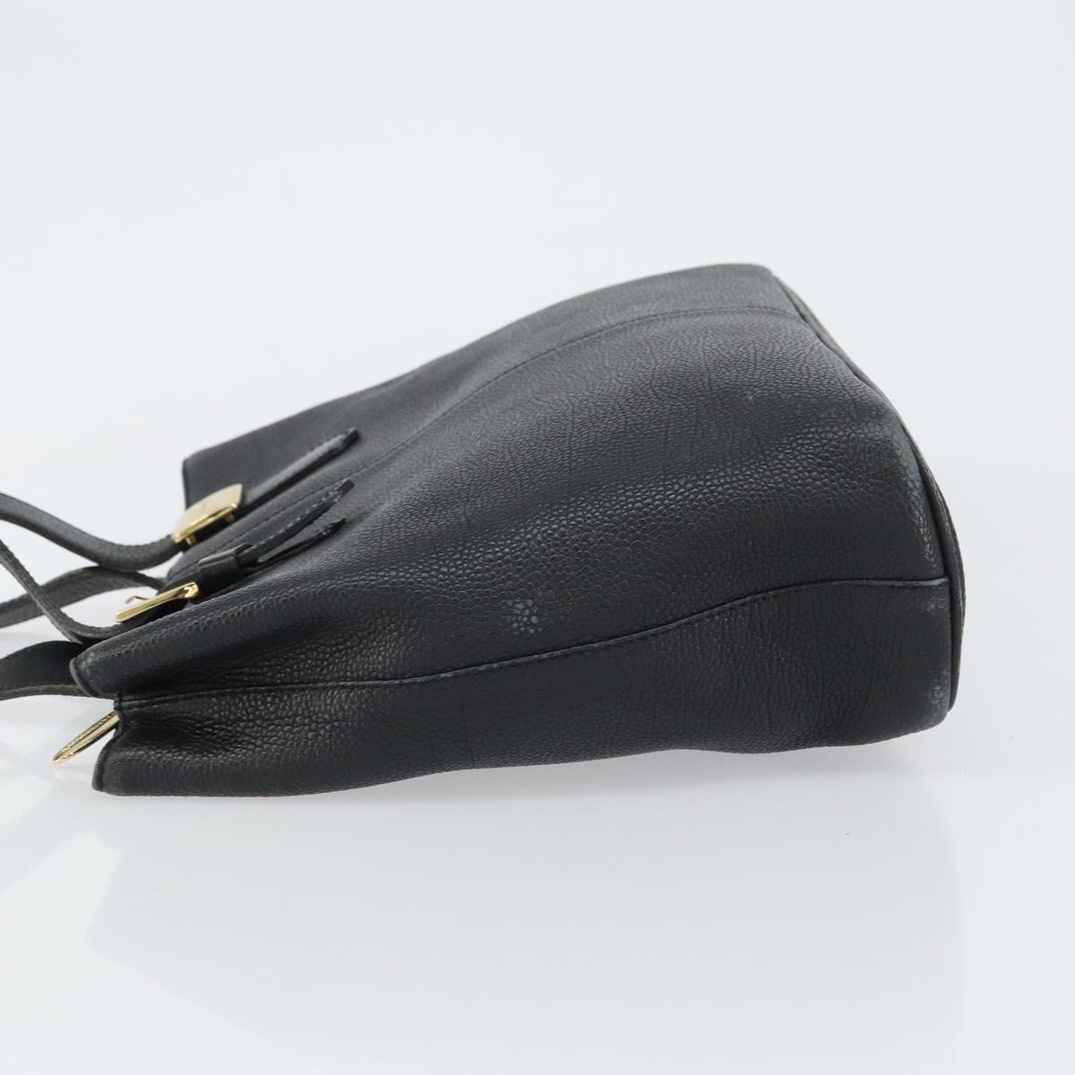 BURBERRY Hand Bag Leather Black Gold Auth bs31757