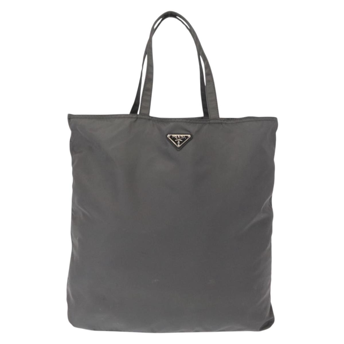 PRADA Tote Bag Nylon Gray Silver Auth bs32079