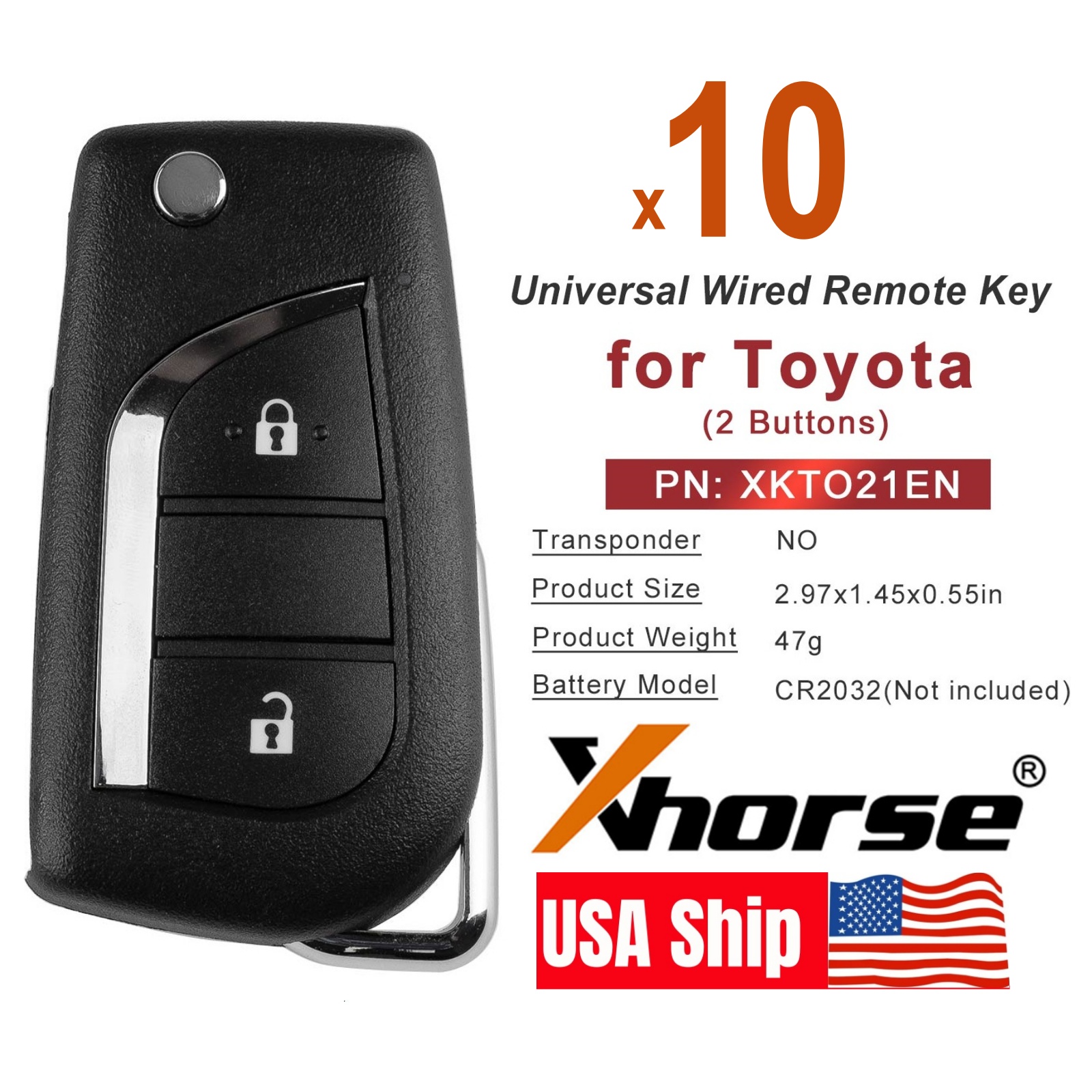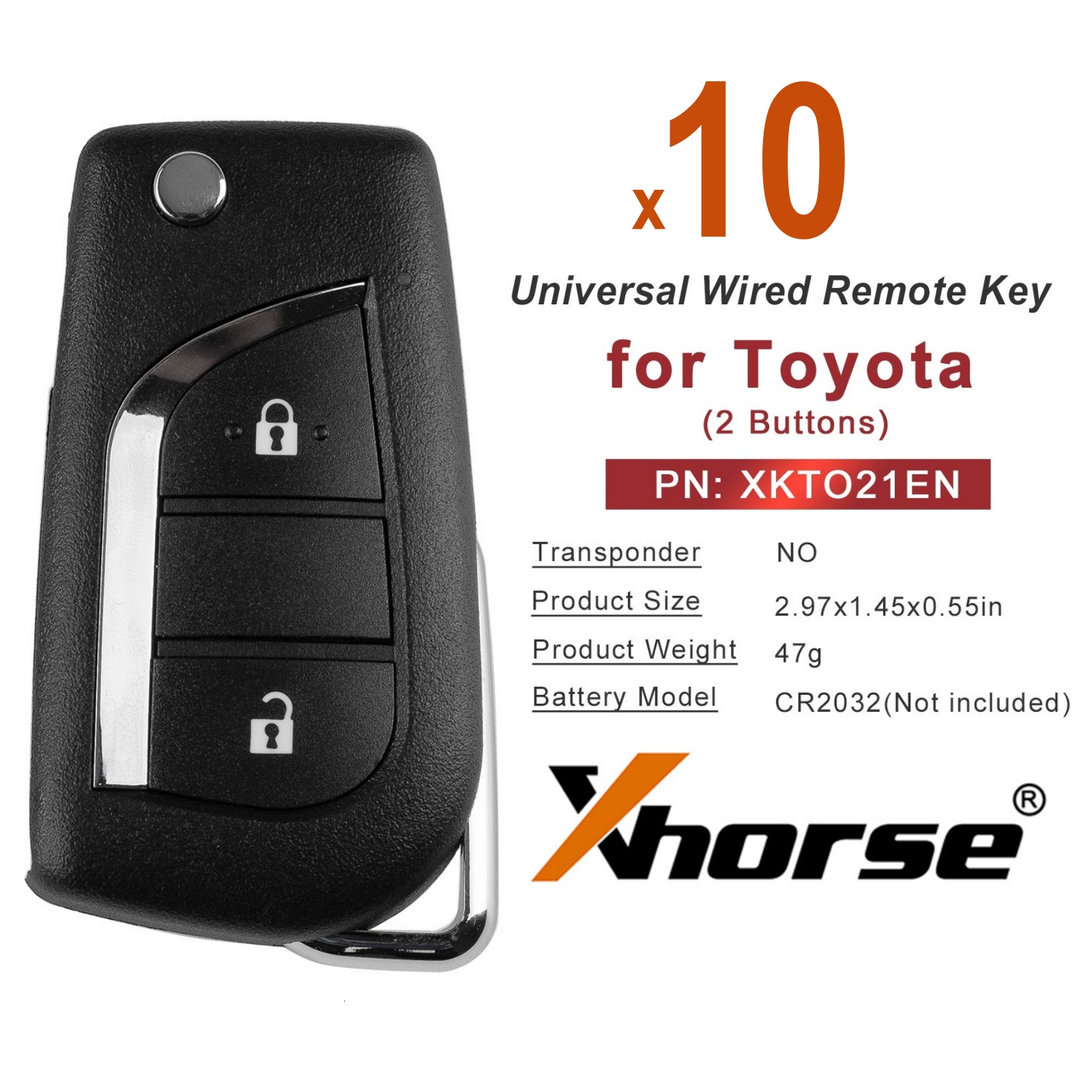 XHORSE XKTO21EN for Toyota 2 Buttons Second Generation Universal Wired Remote Key 5pcs/lot Powerful XK SERIES WIRED REMOTE V2: Package includes: 5pc x XHORSE XKTO21EN for Toyota 2 Buttons Second Generation Universal Wired Remote Key
