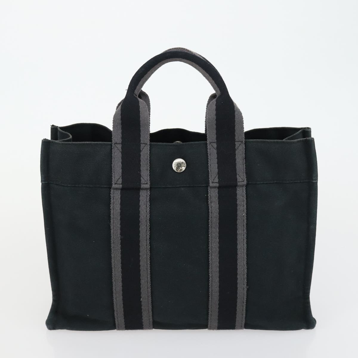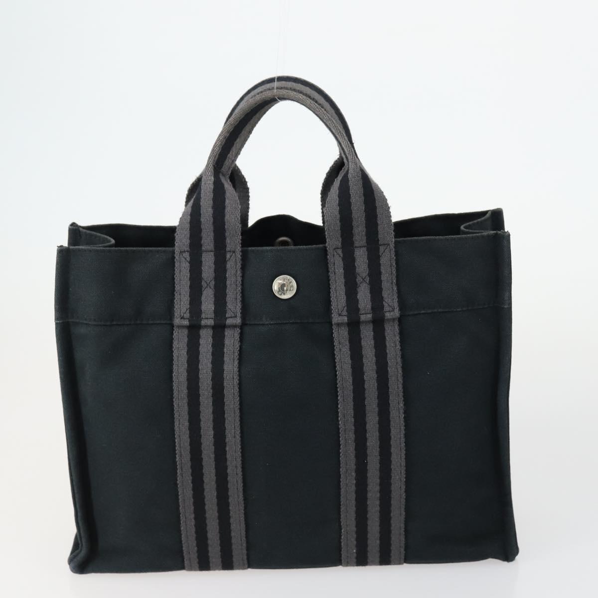 HERMES Fourre ToutPM Hand Bag Canvas 2 Set Black Auth 157076