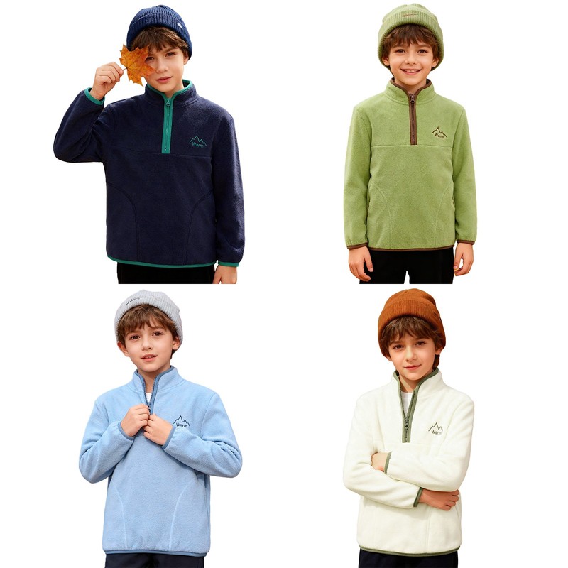 Long-sleeve pullover style provides full-arm coverage, protecting kids from the cold wind.