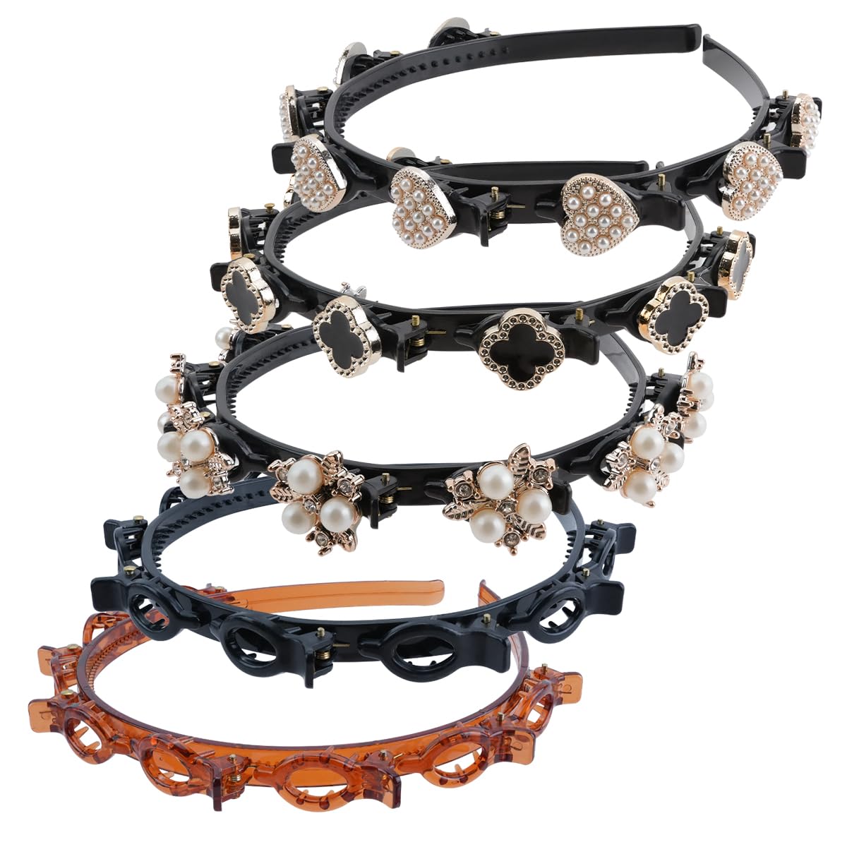 Double layer twist plait headband and beaded hairpin headband, different styles and multiple patterns, you can choose.