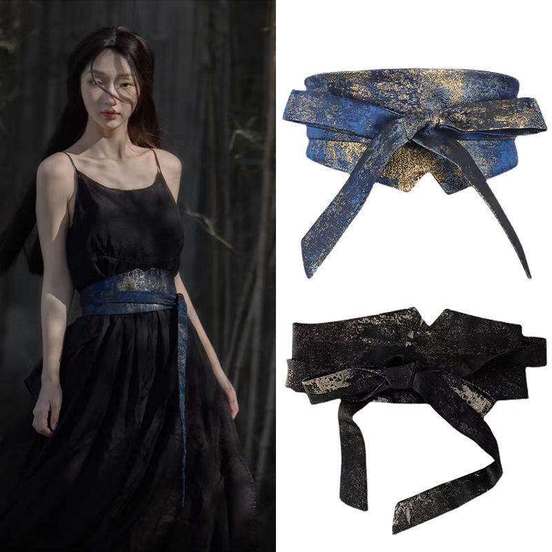 Lady Wide Obi Belt Waistband Corset Cincher Shiny for Dress DIY Decor Retro Chic