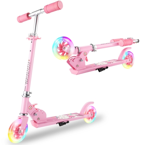 Fold up scooter is equipped with Large Wheels (120mm) and ABEC-7 bearing, which make the ride much smoother on our bumpy sidewalks and driveway.Toddler scooter can also be light up. It looks very dazzling and is very suitable for scooters for kids 4-10 years old.