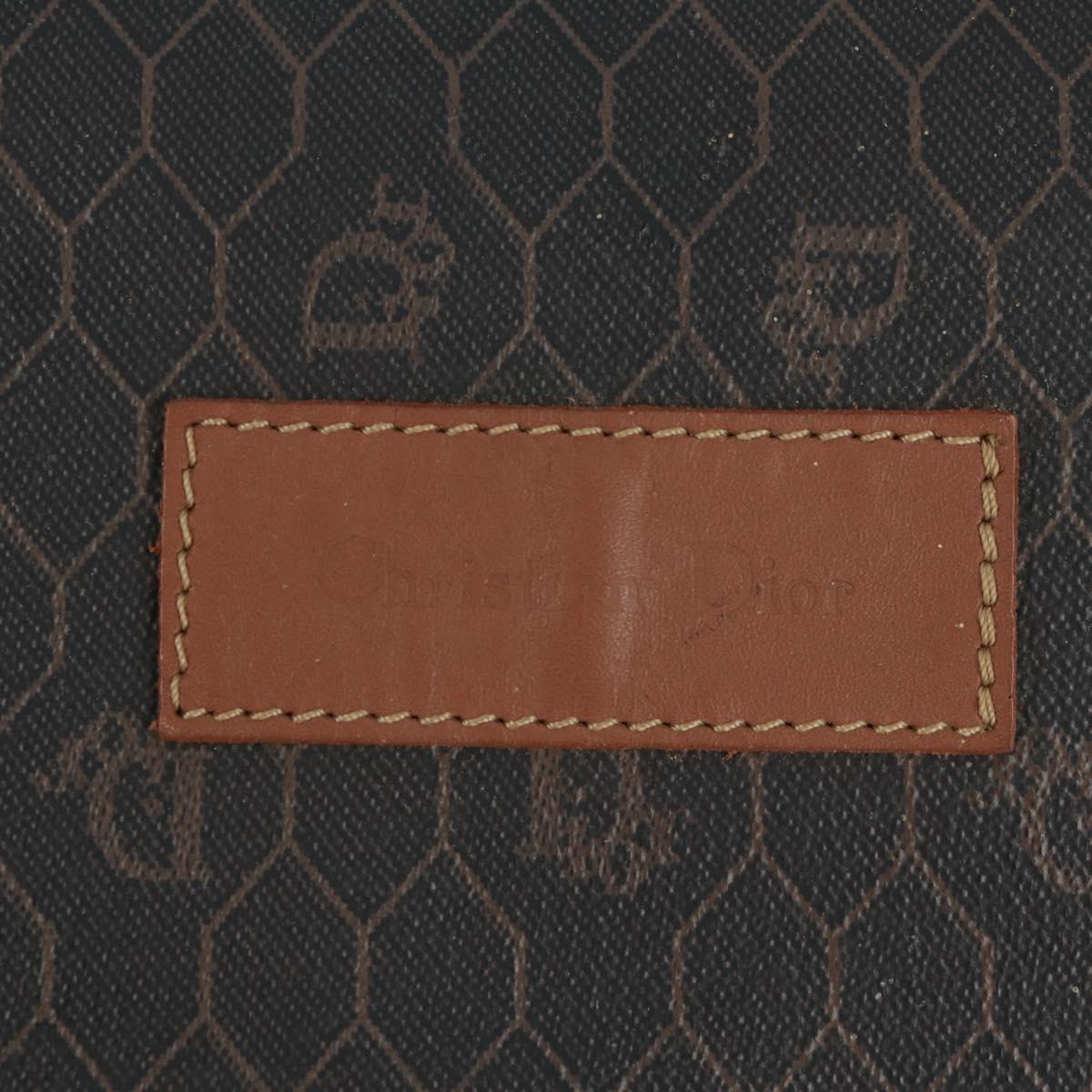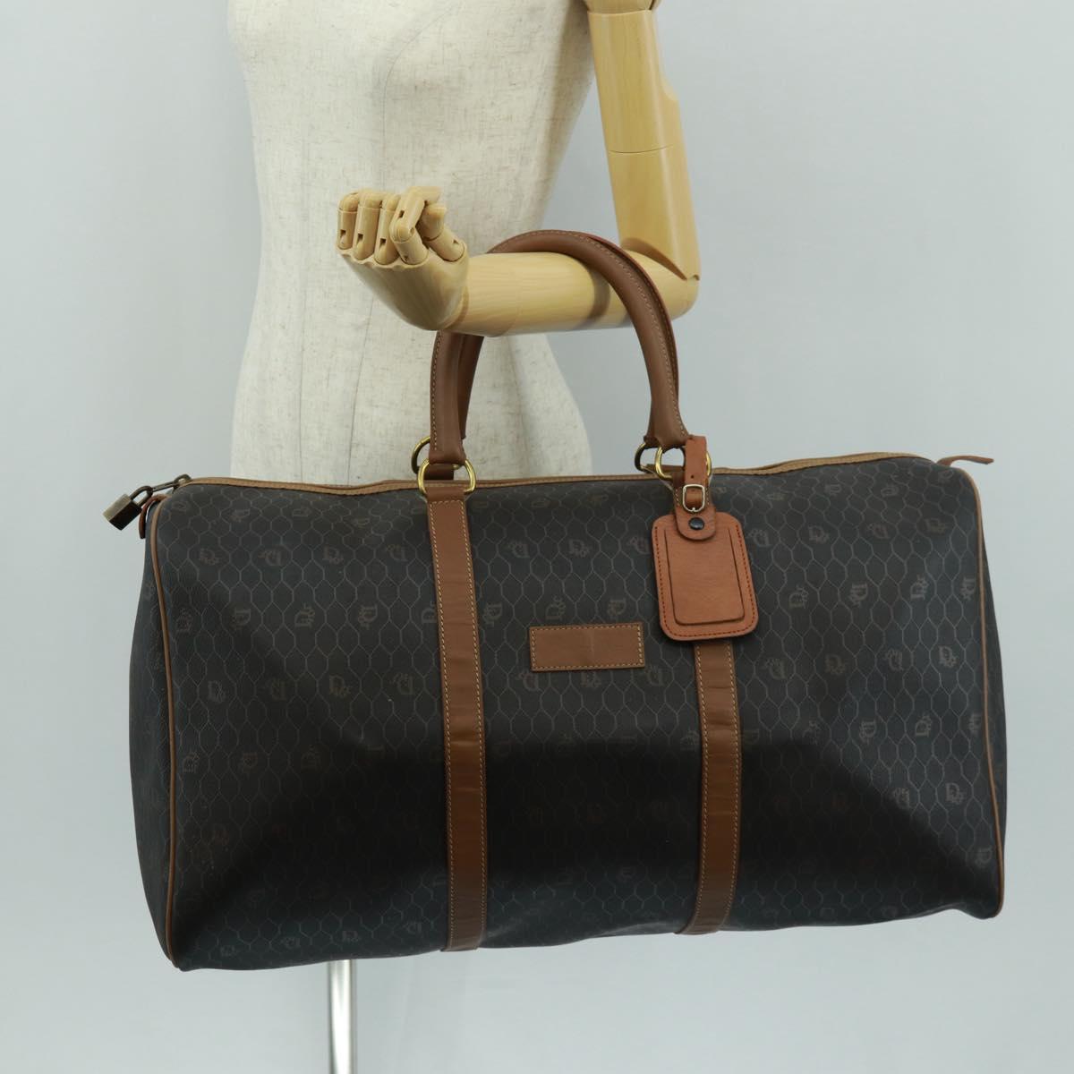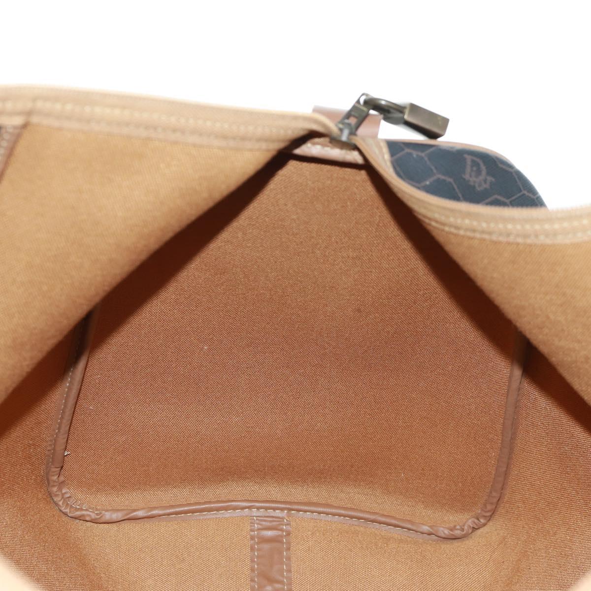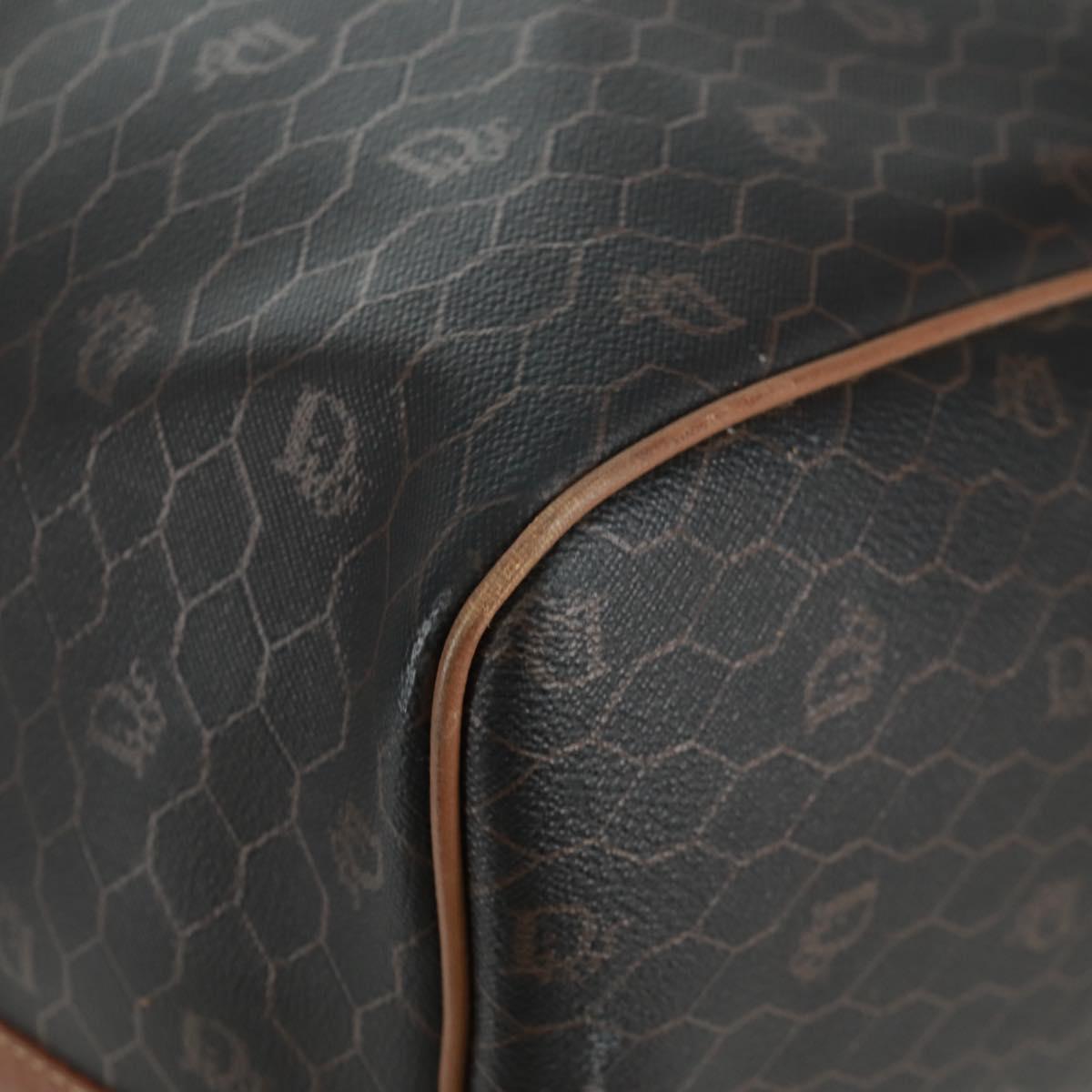 Christian Dior Honeycomb Canvas Boston Bag PVC Black Gold Auth 158369