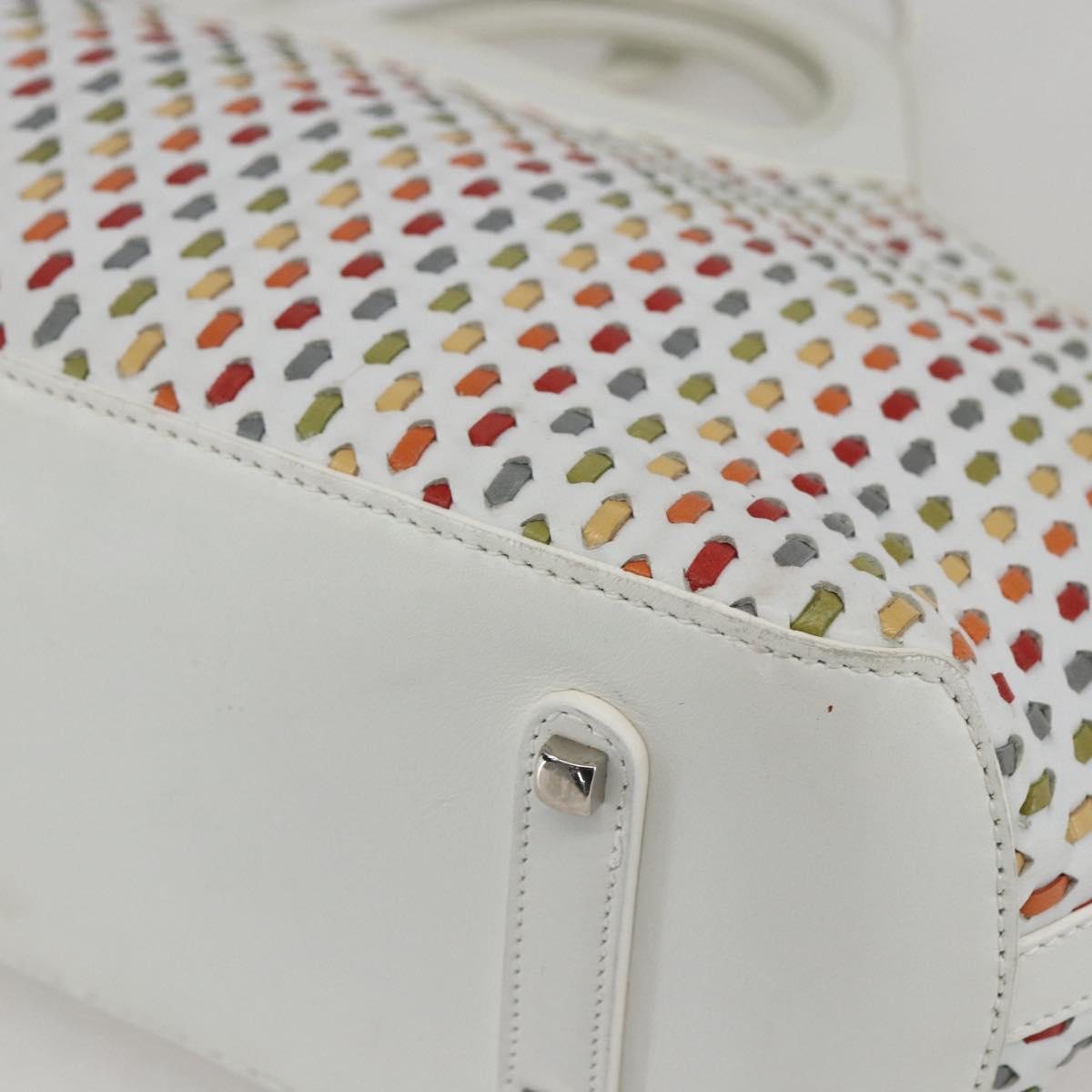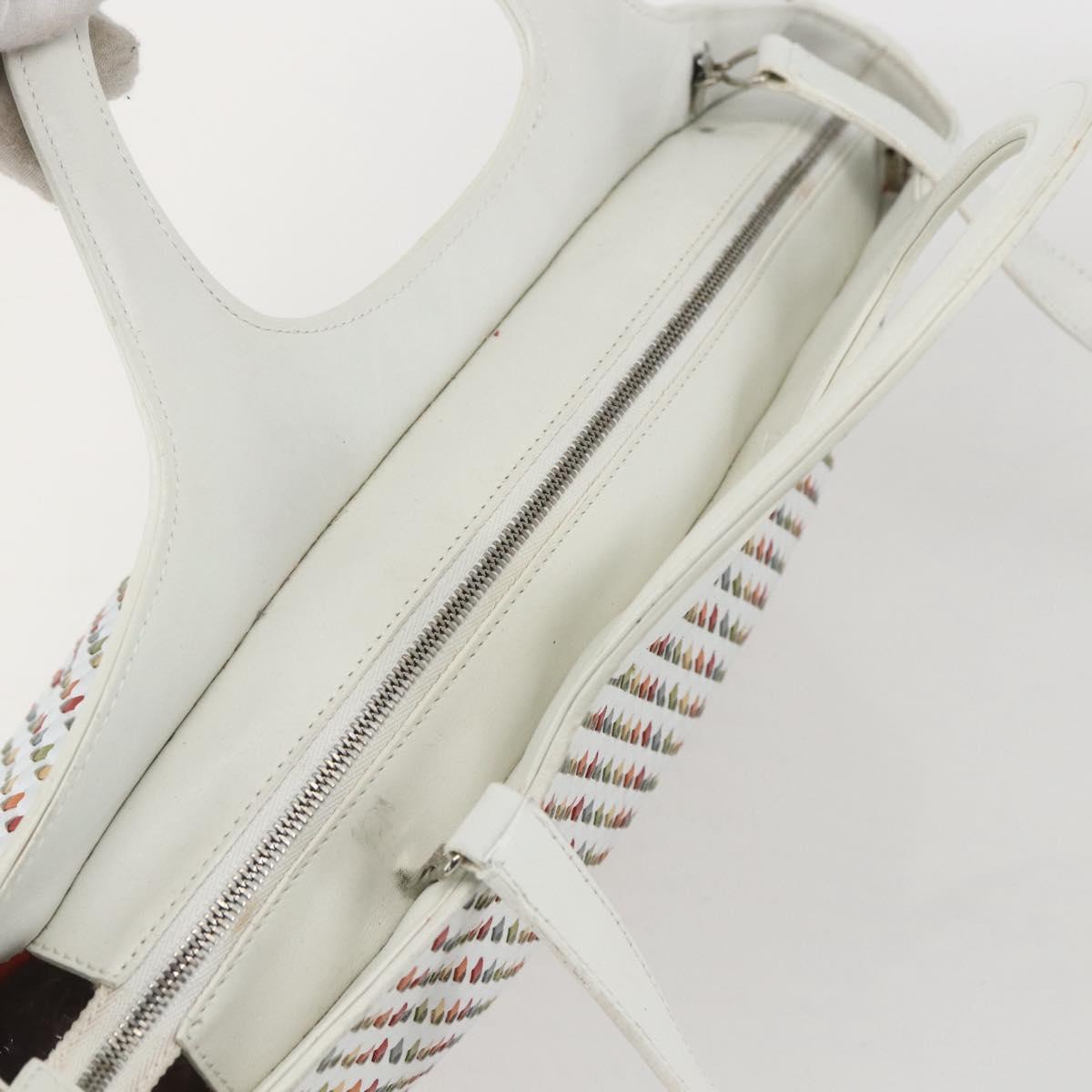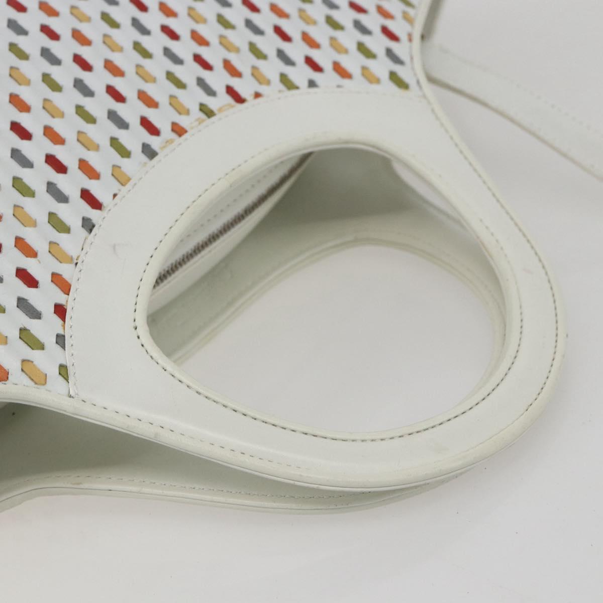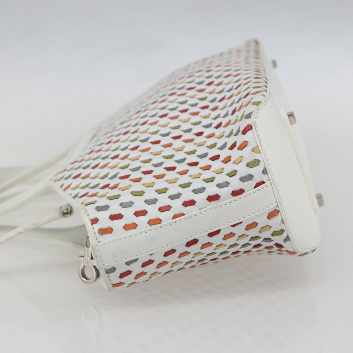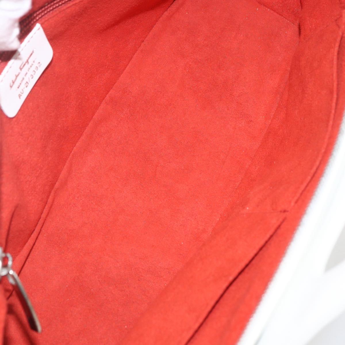 Salvatore Ferragamo Gancini Hand Bag Leather 2way White Silver Auth 159380